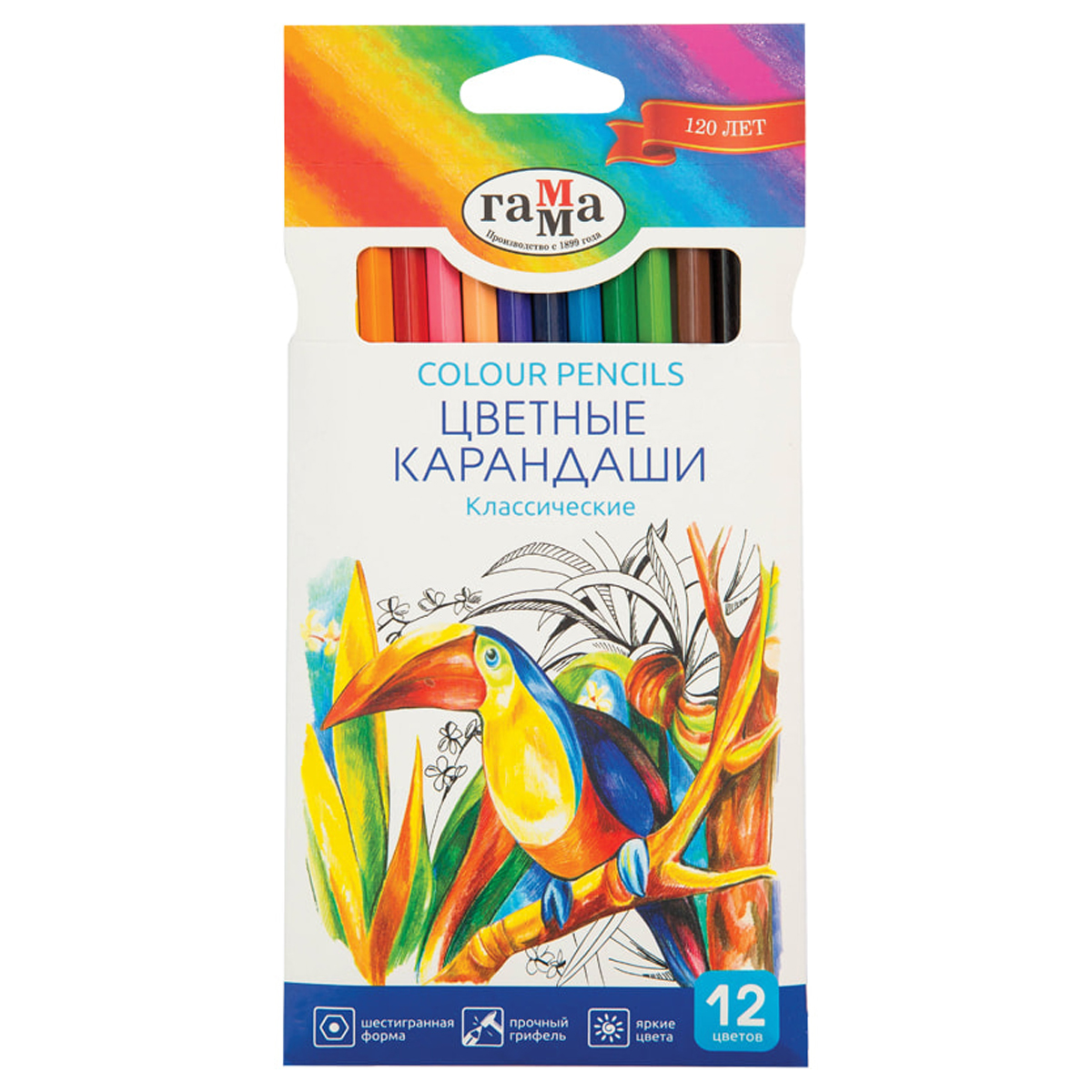 Карандаши цветные Гамма Классические 12 карандашей 12 цветов шестигранные