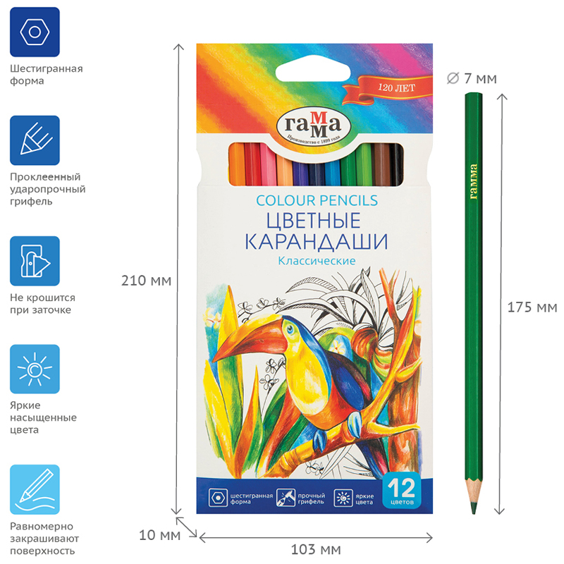 О товаре «Карандаши цветные Гамма Классические 12 карандашей 12 цветов шестигранные»