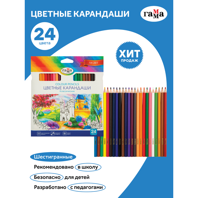 Карандаши цветные Гамма Классические 24 цвета шестигранные