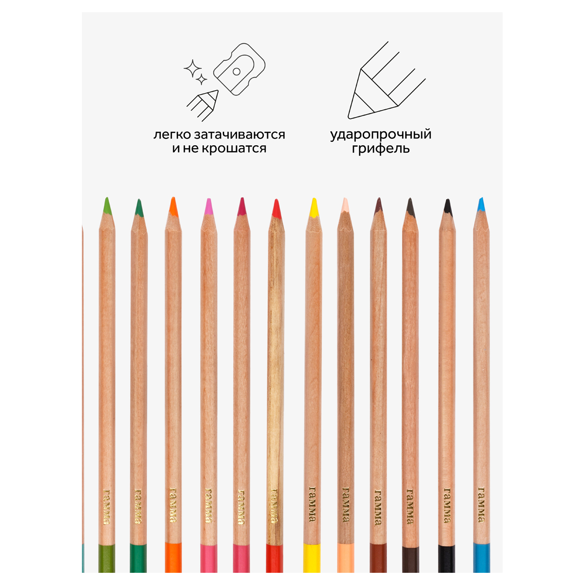 Супермягкие цветные карандаши ГАММА серии «Мультики» выполнены в шестигранном корпусе и благодаря грифелю премиум-качества отличаются легким скольжением и комфортным рисованием по бумаге любого типа. В наборе 18 цветов. Увеличенный диаметр грифеля — 4 мм способствует легкой штриховке изображения. Ребенку не придется сильно давить на карандаш — рисунок получится ярким и равномерно закрашенным. Проклеенный ударопрочный грифель не крошится во время заточки и не ломается даже после падения. Корпус карандаша диаметром 7 мм и длиной 174 мм изготовлен из дерева. Специальная обработка древесины позволяет легко заточить карандаш без зазубрин и заноз. Упаковка – картонная коробка с европодвесом.