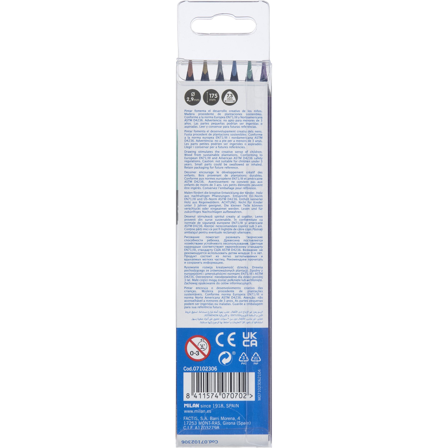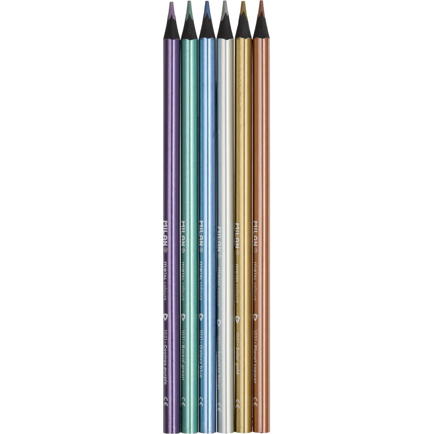 Карандаши цветные Milan 6 карандашей 6 цветов трёхгранные (металлические)
