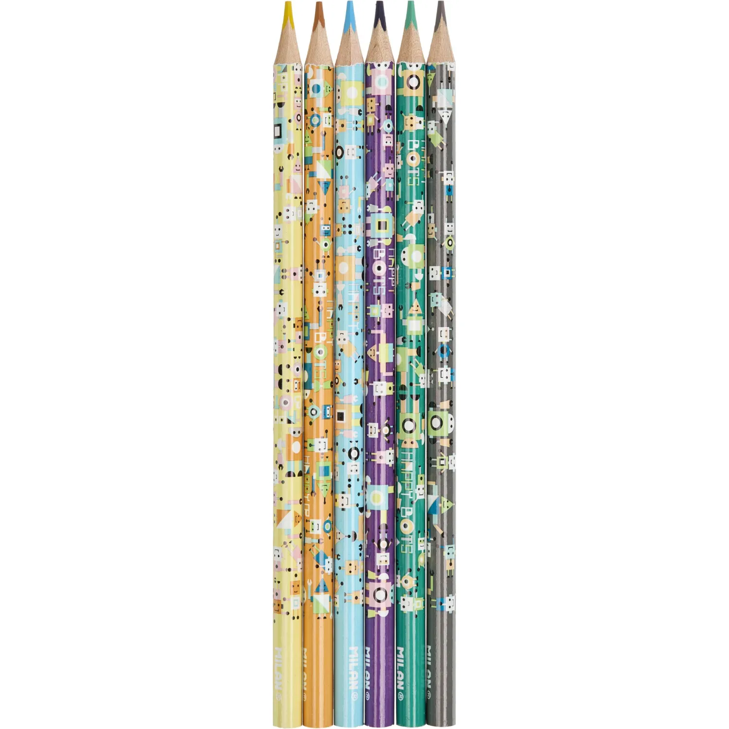 О товаре «Карандаши цветные Milan Happy Bots 6 карандашей 6 цветов трёхгранные»