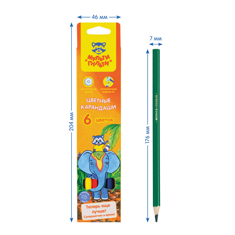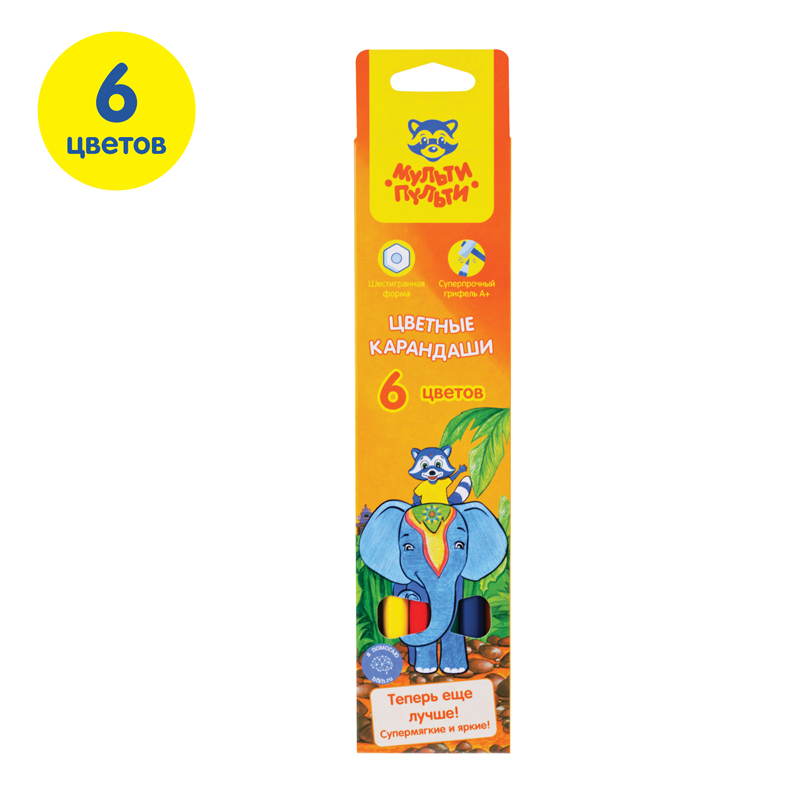 О товаре «Карандаши цветные Мульти-Пульти "Енот в Индии", 06цв., заточен., картон, европодвес»
