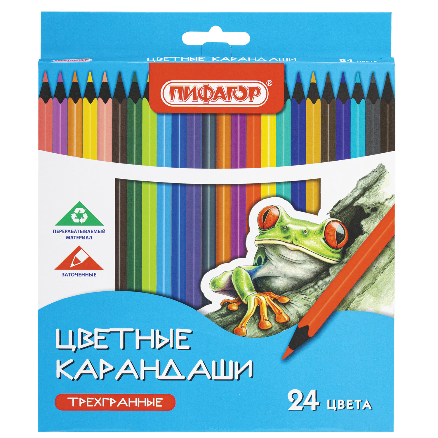 О товаре «Карандаши цветные ПИФАГОР СТАНДАРТ 24 цвета, трехгранный корпус, 182088»