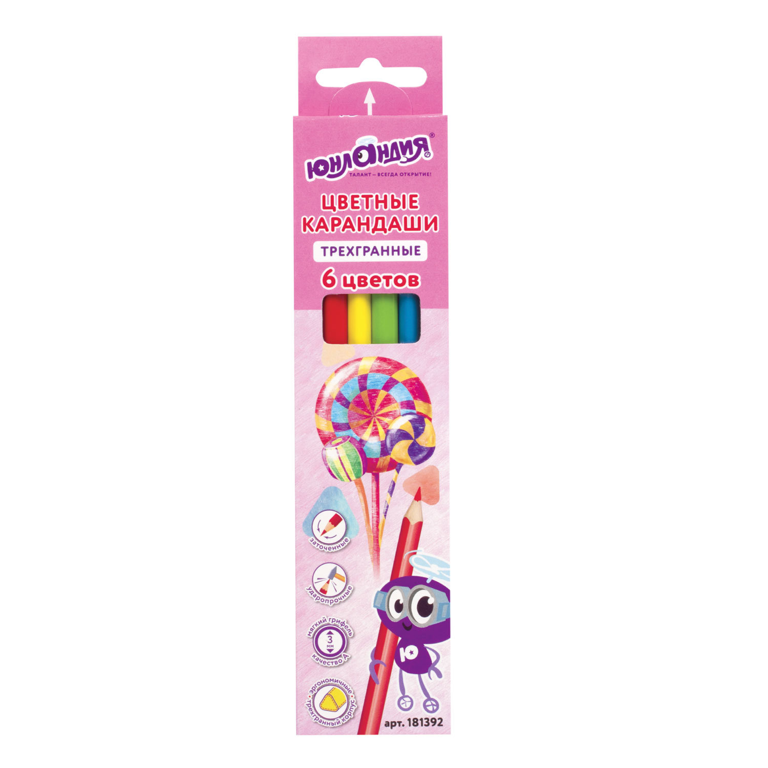 О товаре «Карандаши цветные ЮНЛАНДИЯ "СЛАДКИЕ ИСТОРИИ", 6 цветов, трехгранные, грифель 3 мм, натуральное дерево, 181392»