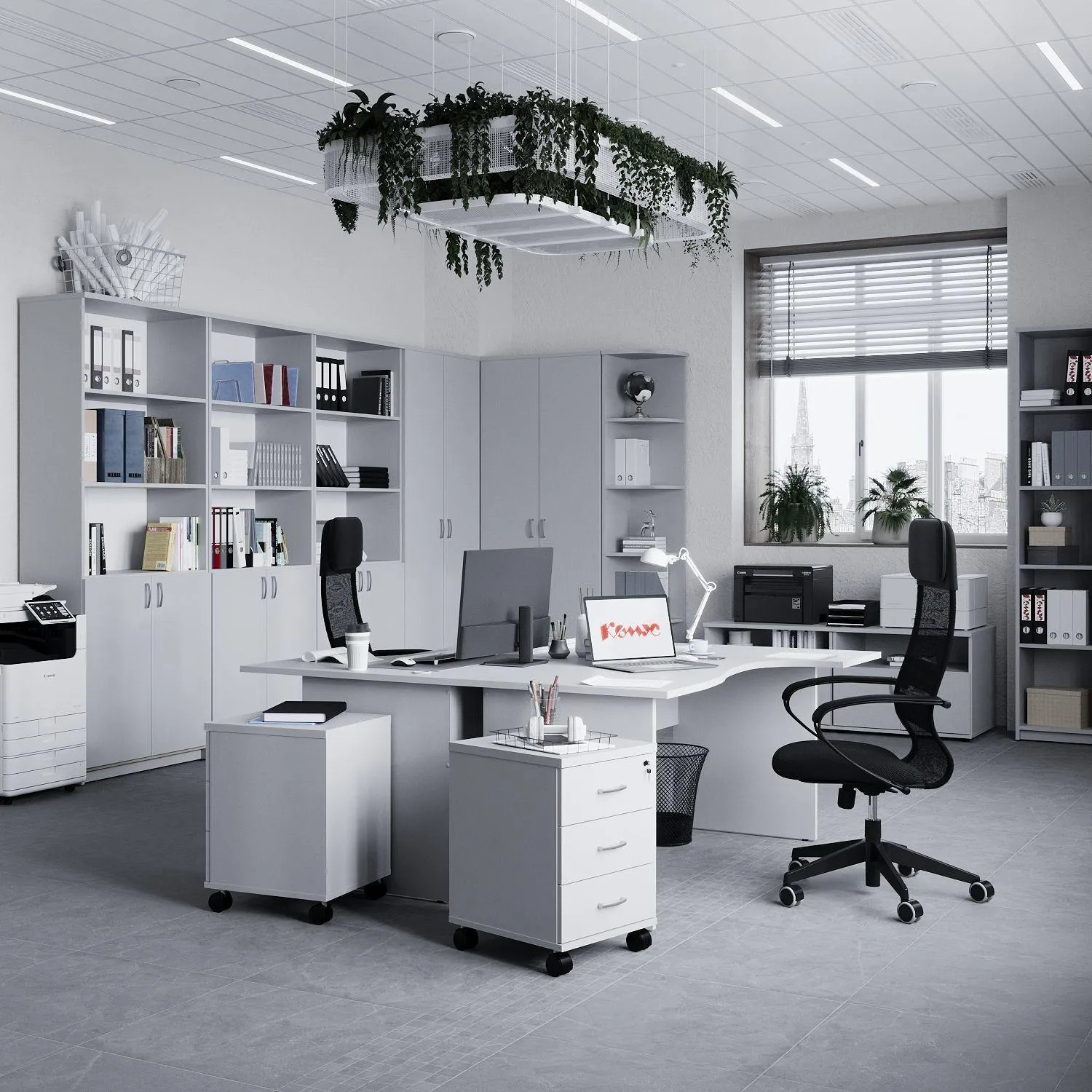 Надежный каркас гардероба с качественным конструктивом, безупречной обработкой торцов деталей, долговечной фурнитурой и расширенными потребительскими характеристиками — это мебель собственной торговой марки Easy от коллектива «Комус». Топ (верхняя крышка) стеллажа Easy One LT изготовлен из ЛДСП толщиной 22 мм края обработаны толстой кромкой ПВХ 2 мм; боковые стенки и полки из ЛДСП 16 мм обработаны кромкой ПВХ 0,4 мм. Задняя стенка (накладная): составная — из двух половин, скрепленных армированной лентой, изготовлена из ХДФ толщиной 3,2 мм белого цвета с внутренней стороны. Вся кромка видимых поверхностей — в цвет каркаса гардероба. Кромление товара отличается повышенным вниманием к качеству обработки. Произведено несколько этапов обработки: подрезка срезов, фуговка торцов и финишная шлифовка краев среза. Все эти дополнительные операции дают безупречную и безопасную торцевую часть, исключающую отслоение кромки деталей и наличие острых краев при эксплуатации. Топ имеет свес фасадной части (для визуального эффекта «накладного» топа над фасадами). Каркас укомплектован регулируемыми по высоте опорами с футорками и металлическим винтом М6 (они скрыты под боковинами) для компенсации неровностей пола. Сборка каркаса полностью на эксцентриковых стяжках (отсутствие видимых отверстий — видимый каркас «монолитен»), предусмотрена возможность многократной сборки/разборки (шток эксцентрика закручивается в муфту, что гарантирует защиту от разрушения присадок при повторных сборках) и дает возможность производить техническое обслуживание товара для долговременного срока службы вашей мебели. В комплекте каркаса гардероба 2 полки жесткого крепления на эксцентриковых стяжках. Нижнее отделение хранения (расстояние от дна до нижней полки): 368 мм, верхнее отделение хранения (расстояние от крышки до верхней полки): 378 мм. С заботой о высоком качестве наших това##ов, в комплектацию добавлен уголок с дюбелем для крепления к стене, при сборке уголок устанавливается в задней части крыши каркаса гардероба. Сверление стен сборщиком не производится (это не входит в стандартный пакет услуг по сборке).