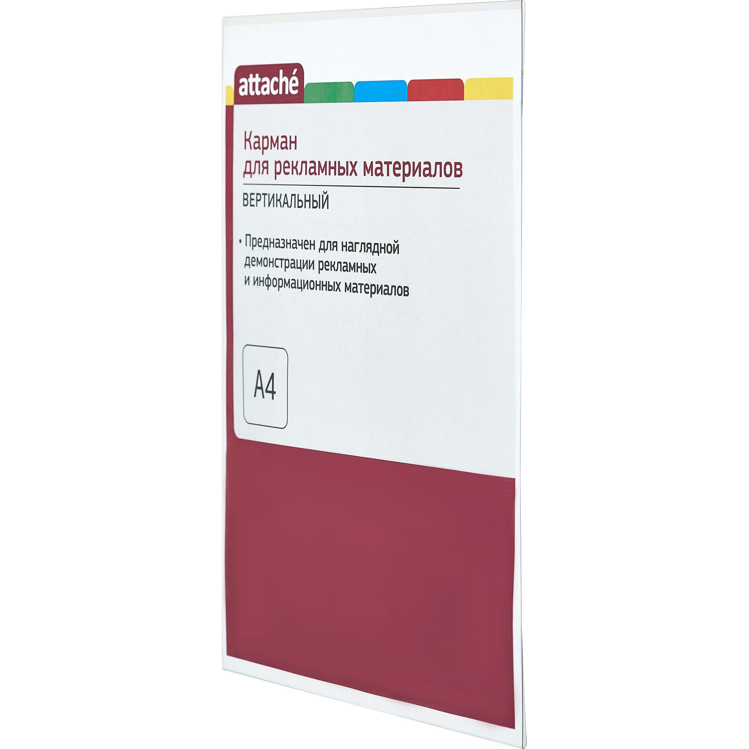 О товаре «Карман настенный A4 вертикальный (210x297 мм) ПЭТ на скотче Attache»