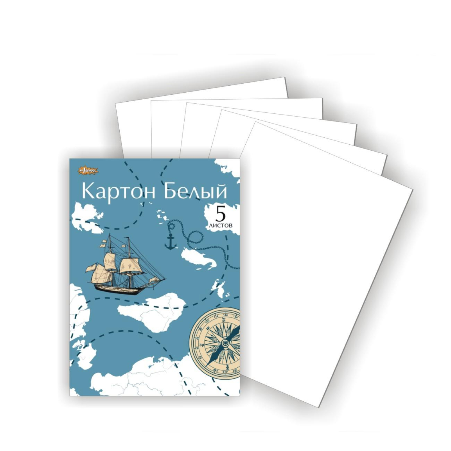 Картон белый &8470; 1 School. Количество листов — 5. Предназначен для десткого детского творчества. В наборе листы размером 201×282 мм. Картон односторонний. Плотность картона — 200-240 г/кв. м. м. Упаковка: картонная папка.