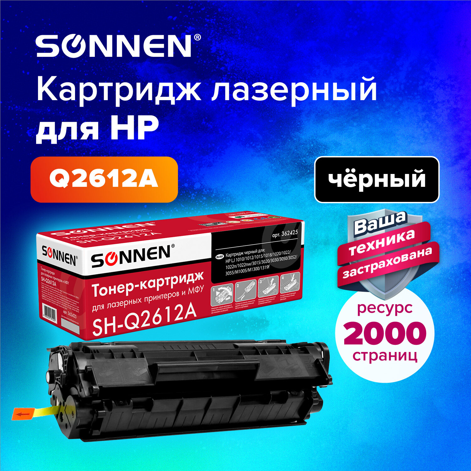 Картридж лазерный SONNEN (SH-Q2612A) для HP LaserJet 1018/3052/М1005, ВЫСШЕЕ КАЧЕСТВО, ресурс 2000 стр., 362425