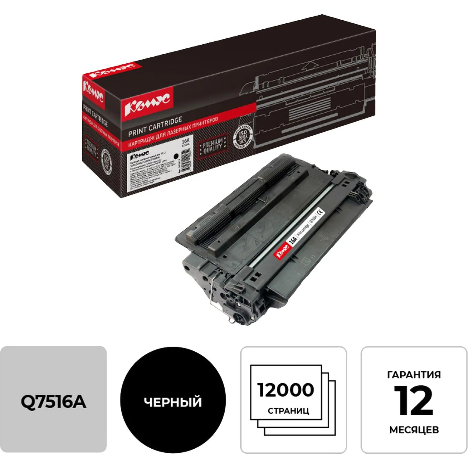 О товаре «Картридж лазерный Комус 16A Q7516A для HP черный совместимый»