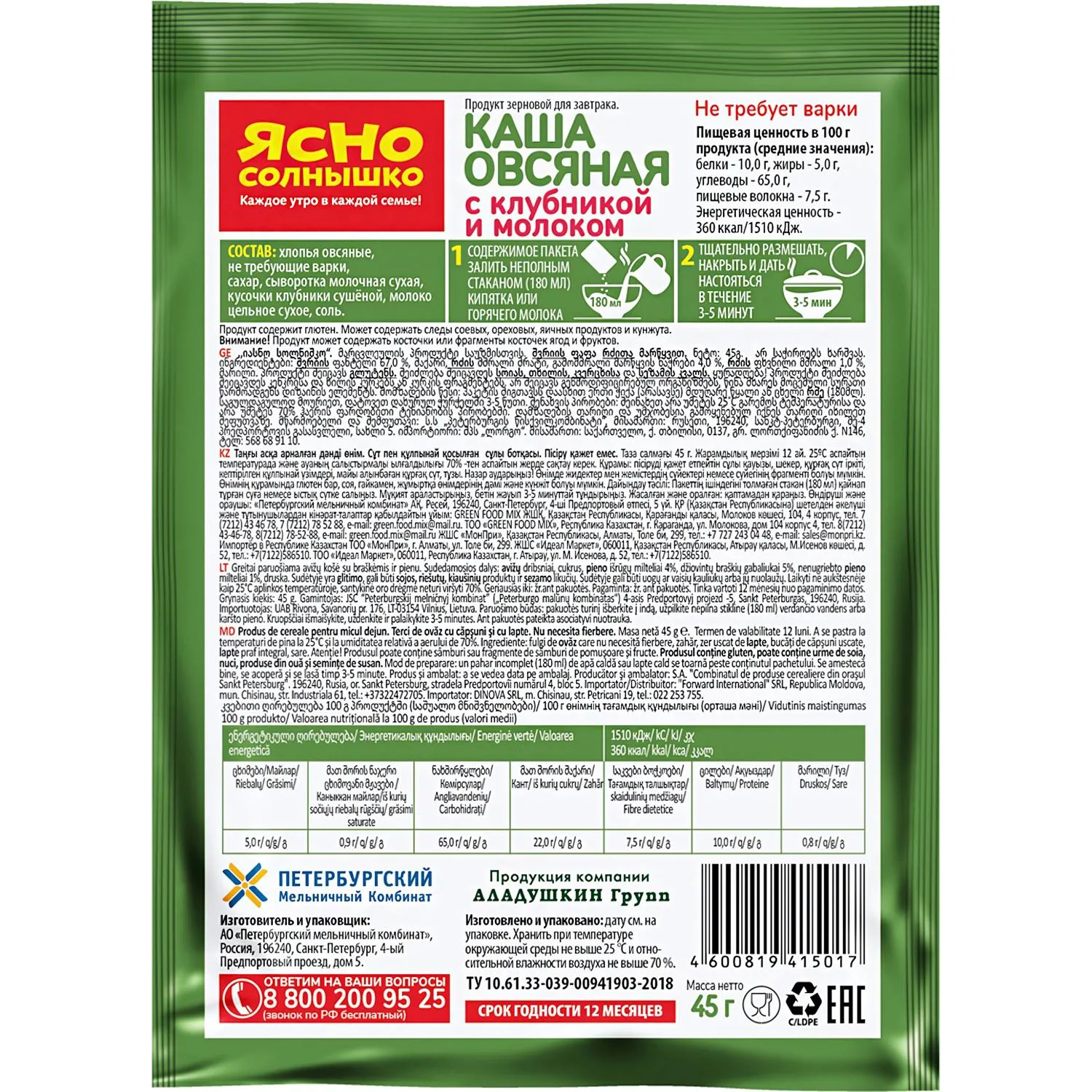 О товаре «Каша Ясно Солнышко овсяная с клубникой и молоком 15 штук по 45 г»