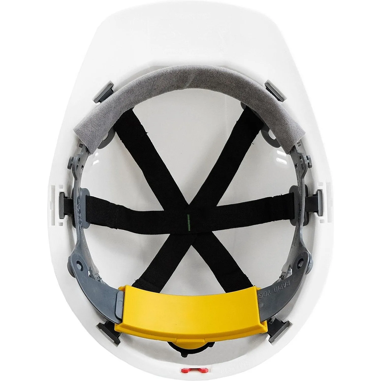 Уникальная конструкция внутренней оснастки Rapid позволяет плавно подгонять и точно регулировать размер оголовья, исключая вероятность спадания каски во время работы, особенно на высоте. Внутренняя оснастка разработана для удобства использования с головными уборами и защитными подшлемниками. Основная функция эффективного гашения удара и распределения силы воздействия выполняется внутренней оснасткой. С наружной стороны лента имеет крючки для крепления защитного подшлемника-пелерины Partner. Налобно-височная часть прикреплена к затылочной с помощью подвижного крепления. Затылочная лента имеет плавный механизм регулировки. Это увеличивает размерный ряд каски и гарантирует идеальную посадку, включая использование каски с различными подкасочными уборами. Ремешок идет в комплекте.