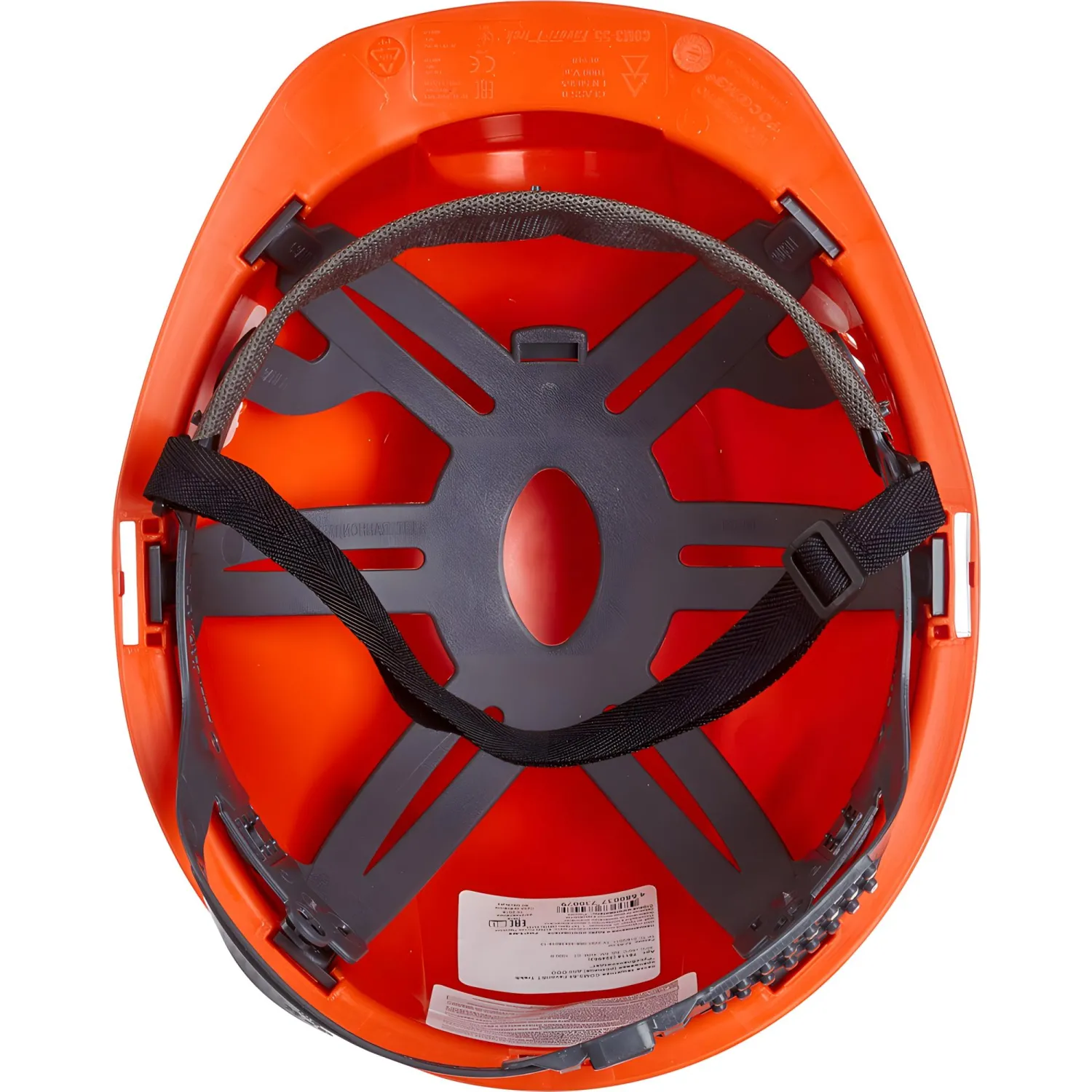 Каска РОСОМЗ СОМЗ-55 FavoriT Trek оранжевая (75114) предназначена для защиты головы в условиях повышенного риска получения травмы. Корпус изготовлен из ударопрочного полипропилена. Внутренняя оснастка TreK со ступенчатой регулировкой размера Standart включает в себя нетканые полиамидные ленты амортизатора с подвесками.
