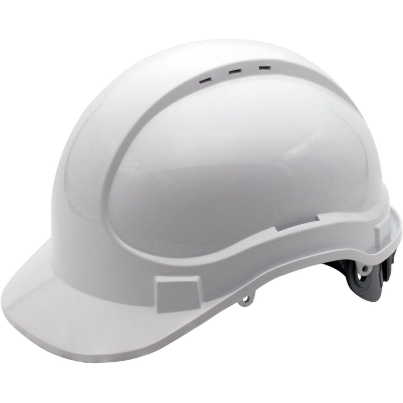 Каска общего назначения предназначена для защиты головы при выполнении строительных и производственных работ. Корпус выполнен из полипропилена, что обеспечивает высокую прочность и устойчивость к механическим воздействиям. Конструкция снабжена боковыми адаптерами для крепления наушников и щитков, а также вентиляционными отверстиями для циркуляции воздуха.