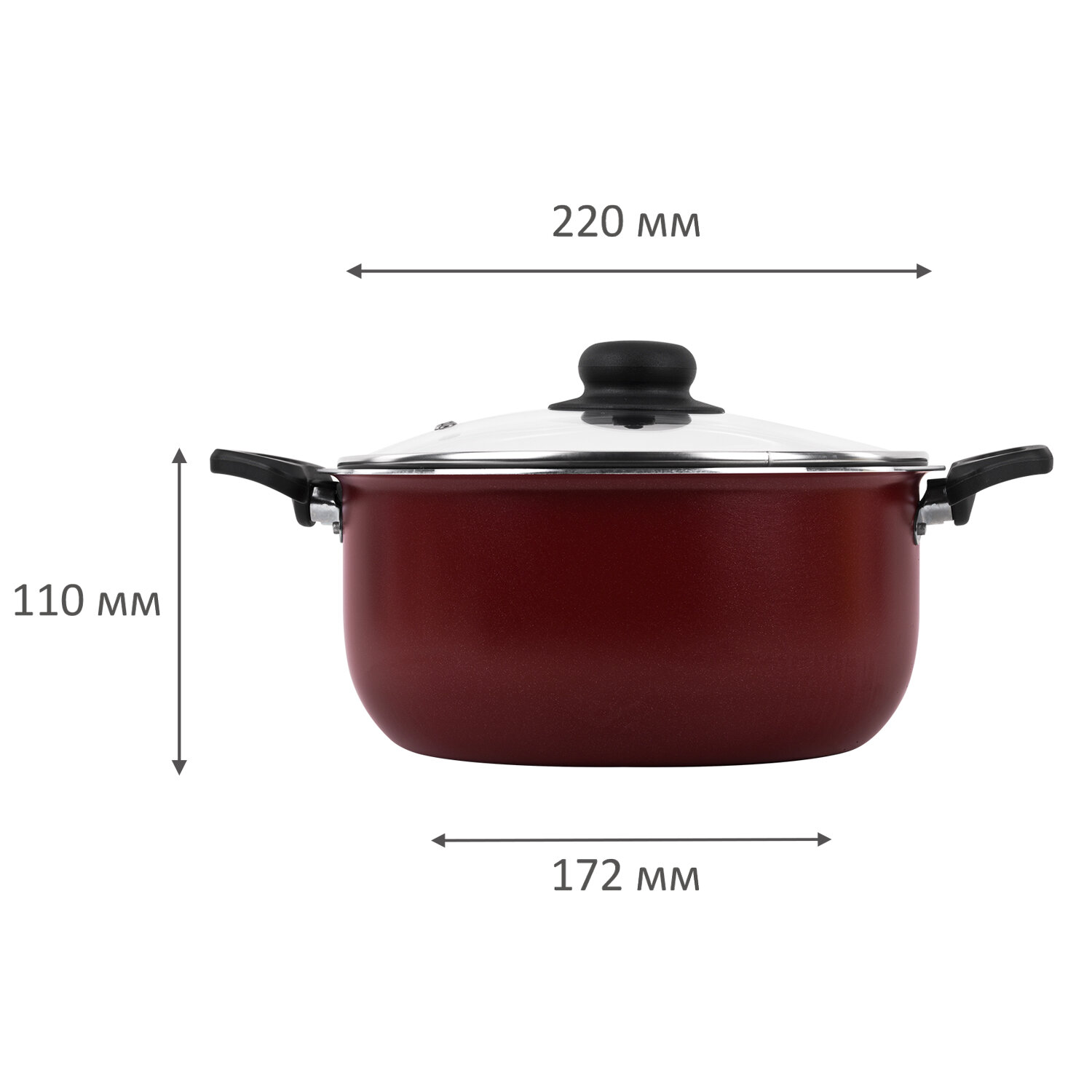 Кастрюля комплектуется стеклянной крышкой, которая удерживает тепло и позволяет контролировать процесс готовки. Ручки выполнены из бакелита — они не нагреваются и удобны в обращении. Изделие можно мыть в посудомоечной машине. Подходит для всех типов плит, кроме индукционных.