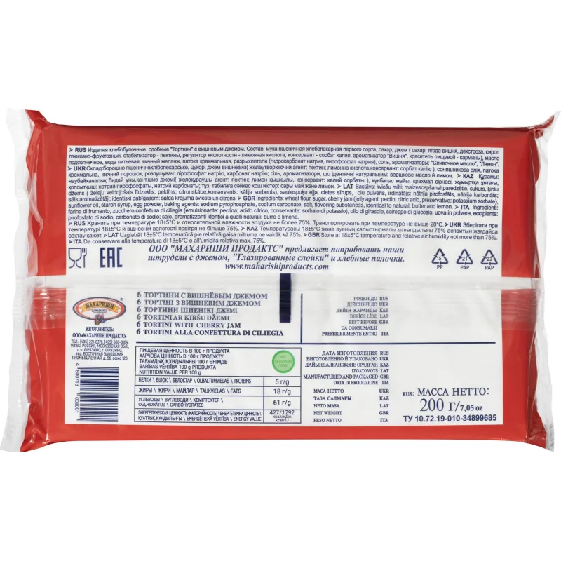О товаре «Кексы Махариши Тортини с вишневом джемом 200 г»