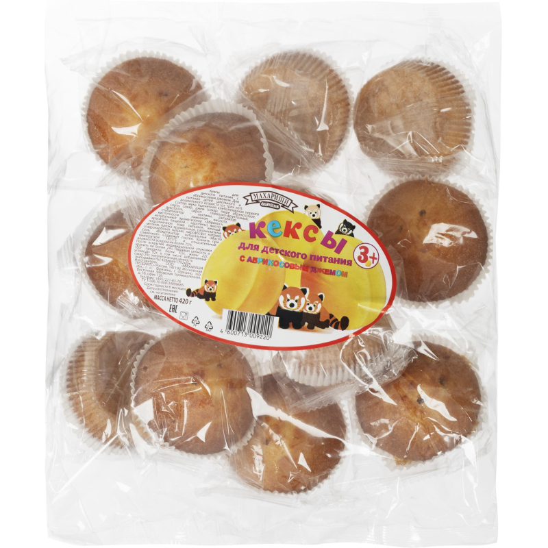 Кексы для детского питания с абрикосовым джемом предназначены для питания детей школьного и дошкольного возраста от 3 лет.