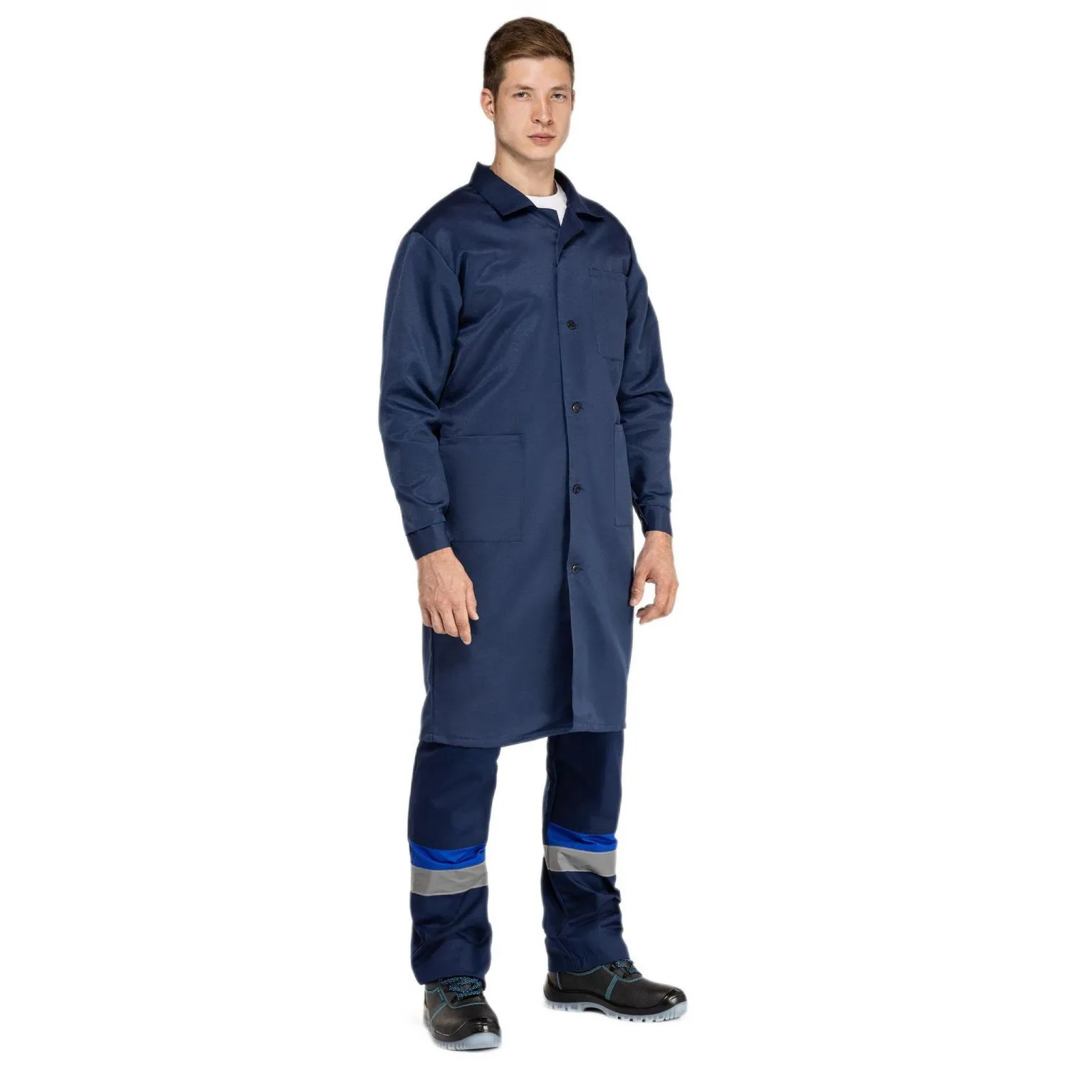 Мужской рабочий халат У03-ХЛ предназначен для защиты от общих производственных загрязнений. Подходит для использования в сельском хозяйстве, строительстве, пищевой промышленности, энергетике, здравоохранении, клининговых службах, фармацевтике, гостиничном сервисе и автомобильной промышленности.