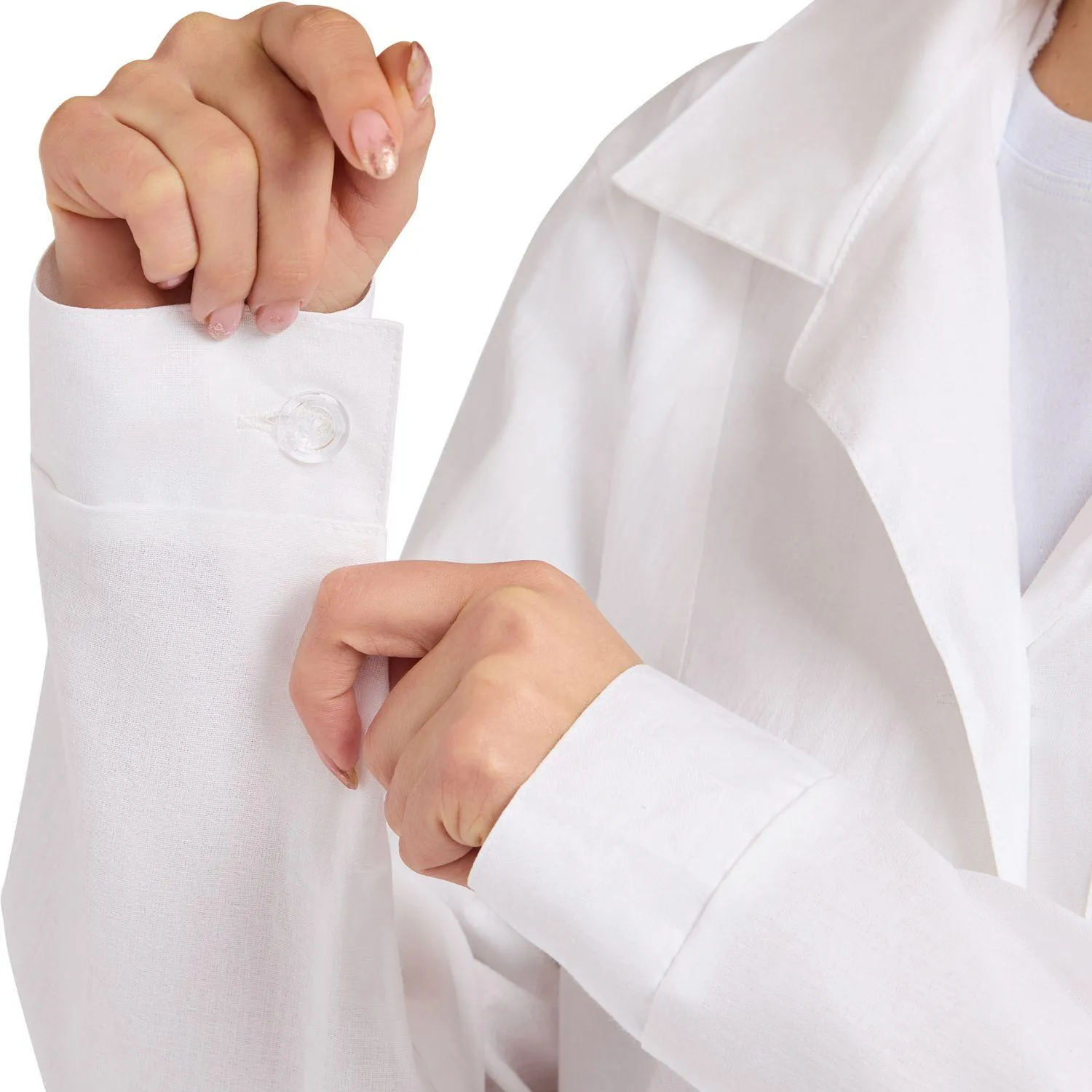 Тип силуэта и посадка свободные, не стесняют движения. Тип застёжки — пуговицы. Рукава длинные.