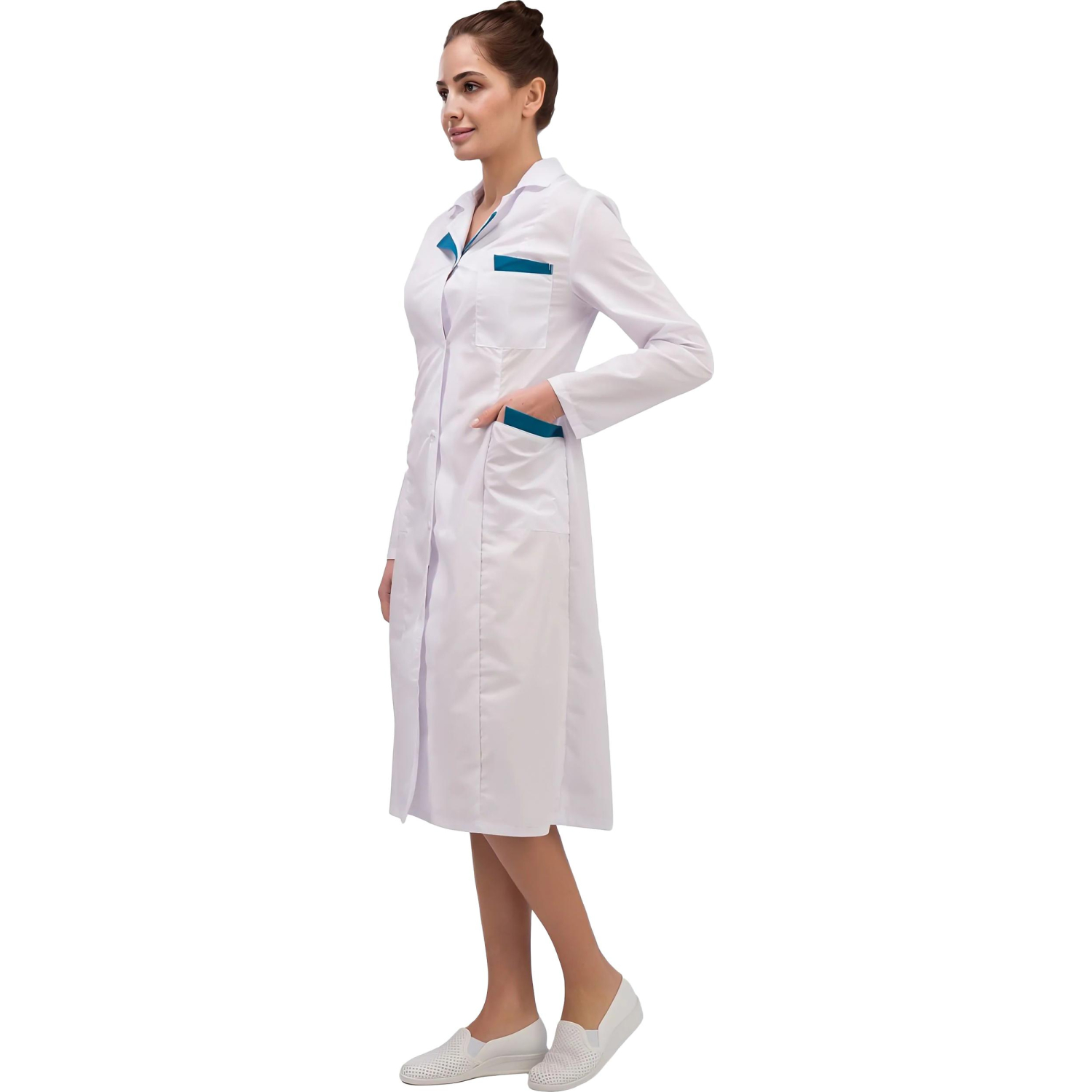 О товаре «Халат медицинский женский м01-ХЛ белый/бирюзовый (размер 40-42, рост 158-164)»