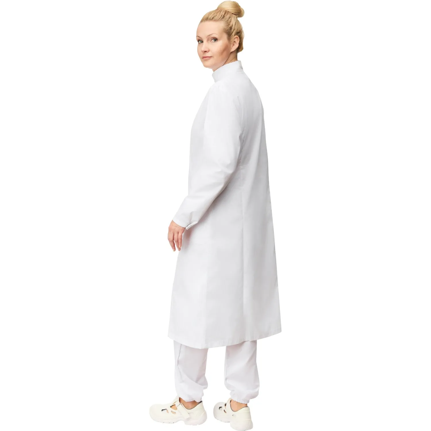 Женский рабочий халат у17-ХЛ САТ ХАССП белого цвета предназначен для защиты от общих производственных загрязнений. Подходит для использования на пищевых производствах, в учреждениях общепита, лабораториях и других зонах с повышенными санитарными требованиями.