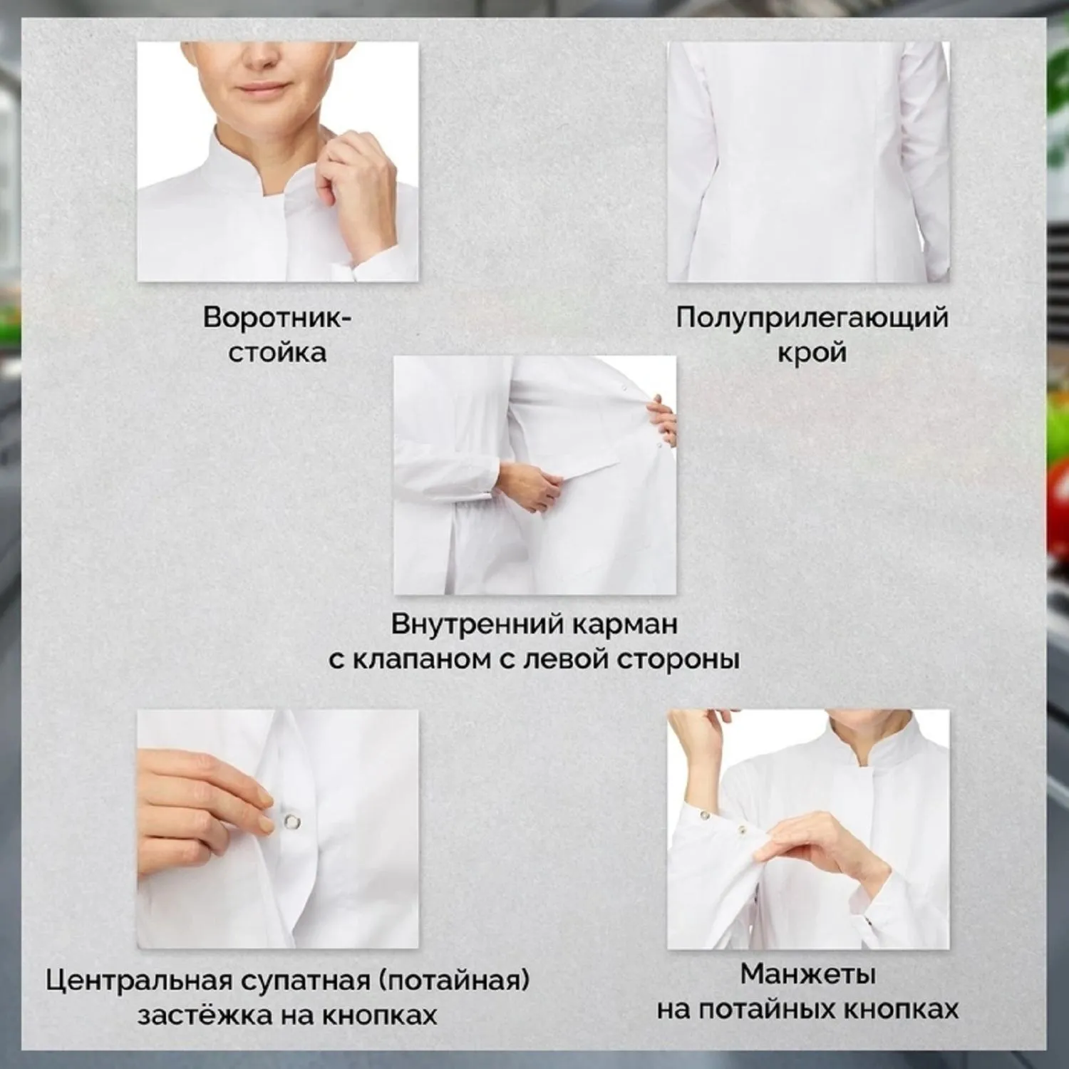 О товаре «Халат жен у17 ХАССП (сатори) бел 96-100/170-176»