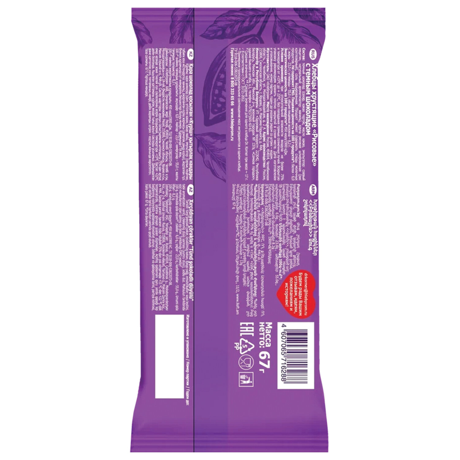 О товаре «Хлебцы Dr.Korner рисовые с темным шоколадом 67 г»