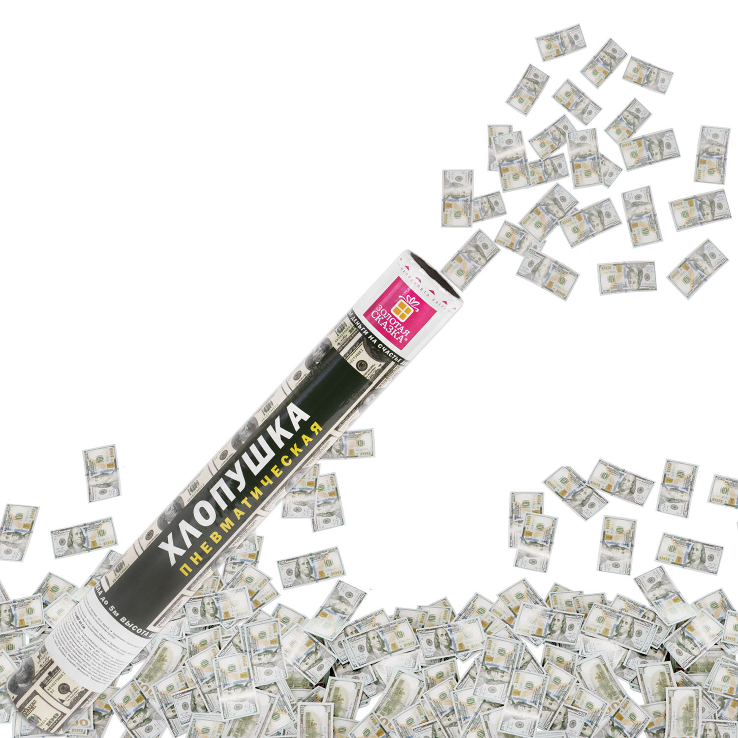 Хлопушка пневматическая 40 см "DOLLARS", бумага, наполнитель "доллары", ЗОЛОТАЯ СКАЗКА, 592463