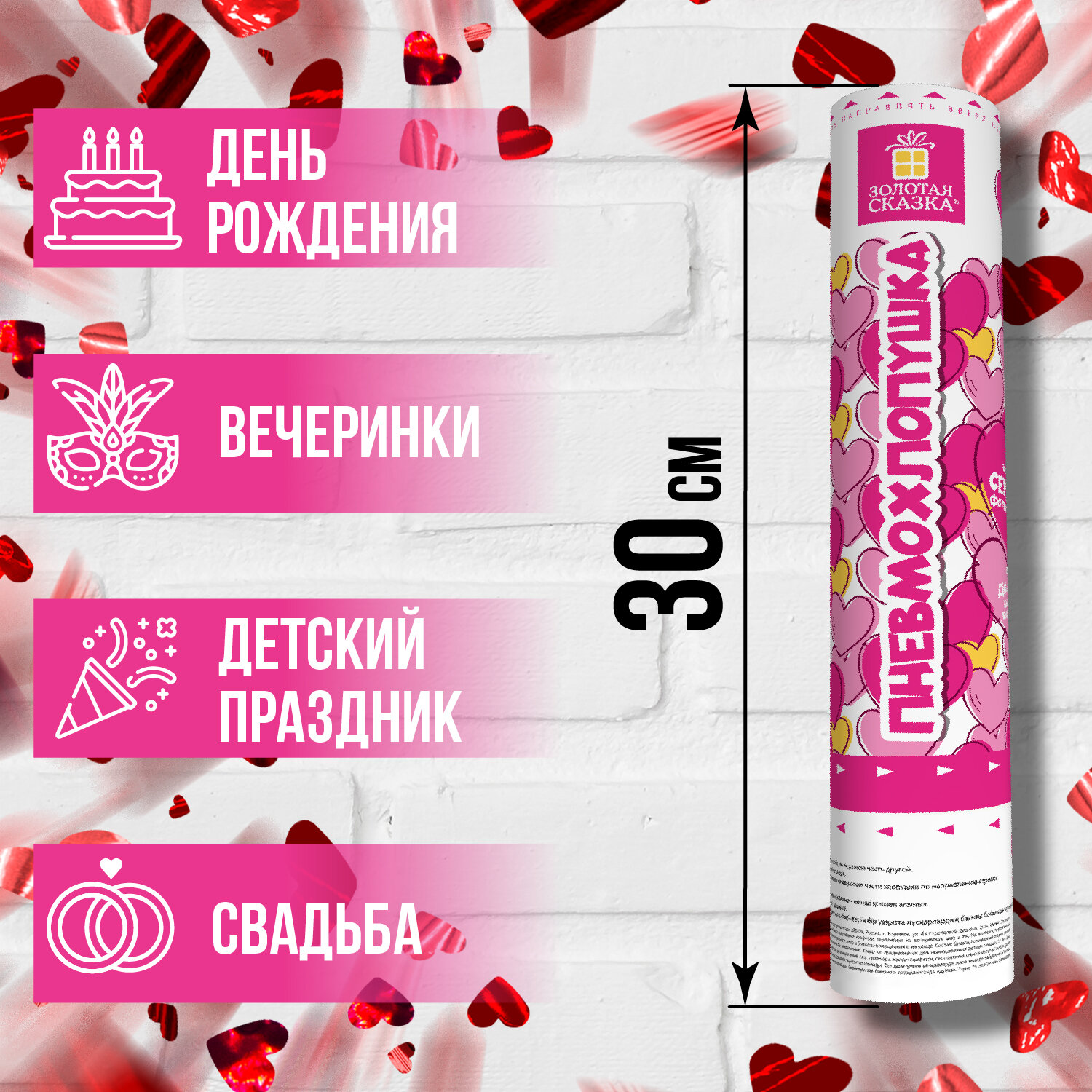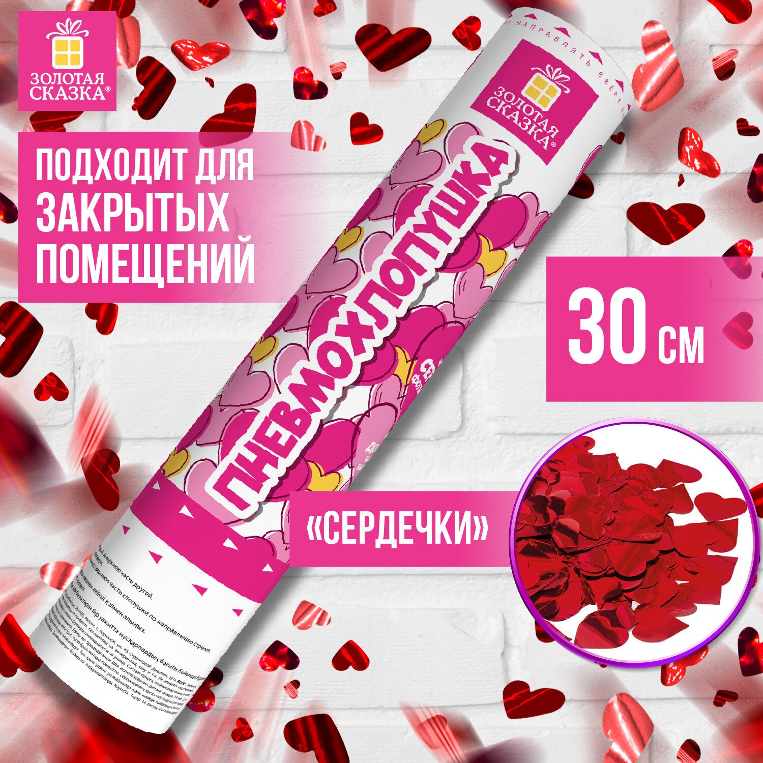 О товаре «Хлопушка пневматическая ЗОЛОТАЯ СКАЗКА "СЕРДЕЧКИ" 30 см, фольга, сердечки, красный, 591475»