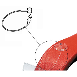 Хомутик для подвешивания ценников, карманов. Защелкивается в петлю, предназначен для одноразового использования.