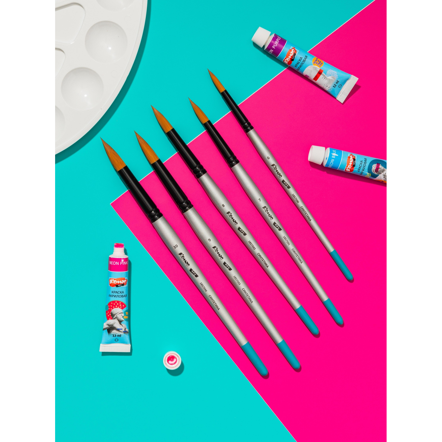 Особенности и преимущества изделия: синтетический ворс — мягкий и эластичный волос обеспечивает плавное и точное нанесение краски, а значит — ровные и красивые штрихи. Круглая форма идеально подходит для рисования мелких деталей, линий, а также для создания плавных переходов и теней. Короткие ручки способствуют удобному хвату и контролю над кистью во время рисования.
