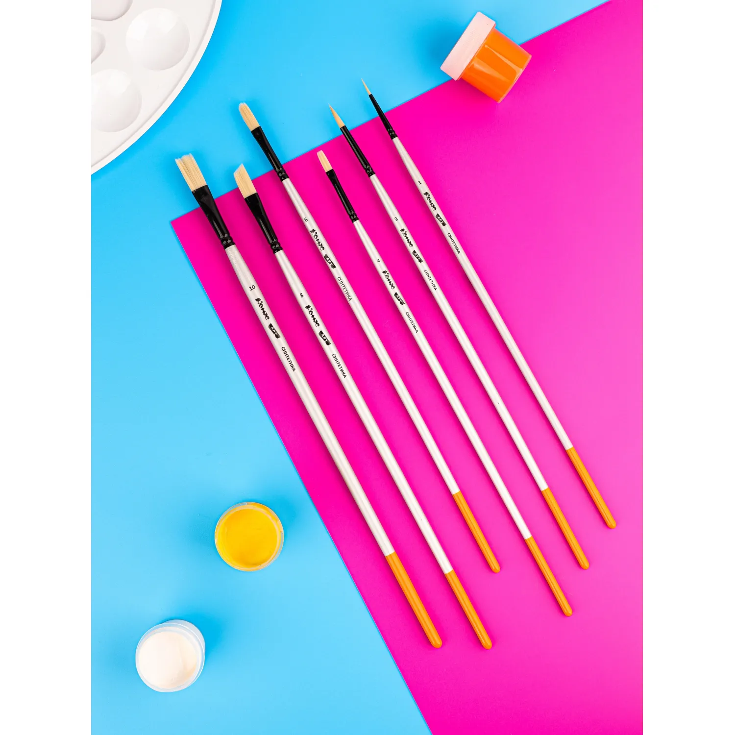 Плоская форма идеально подходит для рисования ровных линий и быстрой закраски. Длинные ручки обеспечивают удобный хват и контроль над кистью во время работы с большими форматами холста.