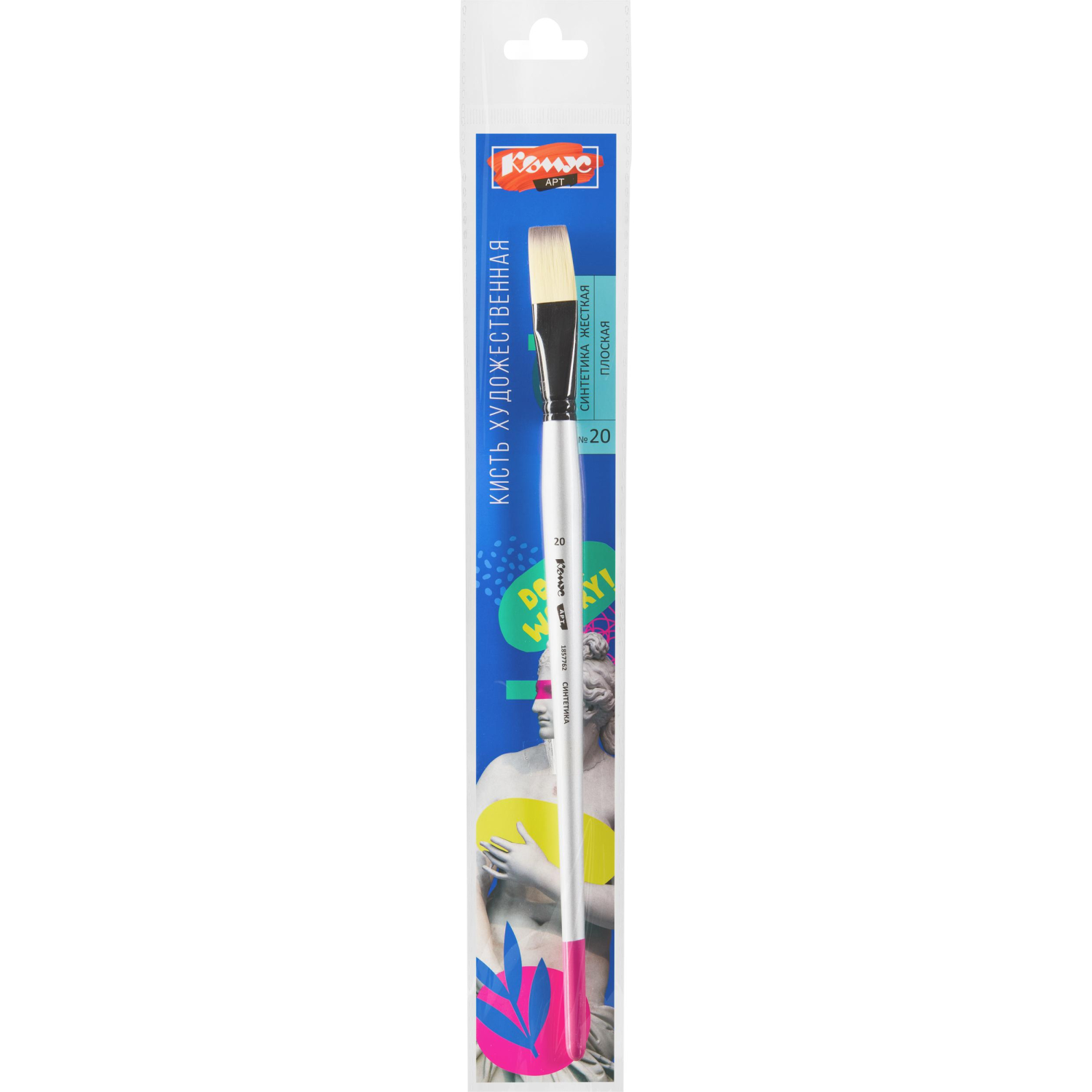 Кисть художественная Комус Арт синтетика средн.жест,плоск,№20,длинная ручка