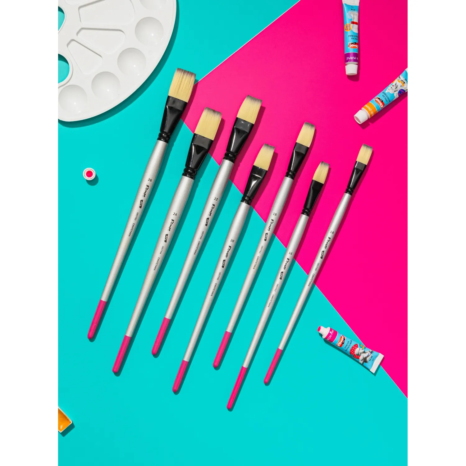 О товаре «Кисть художественная Комус Арт синтетика средн.жест,плоск,№20,длинная ручка»