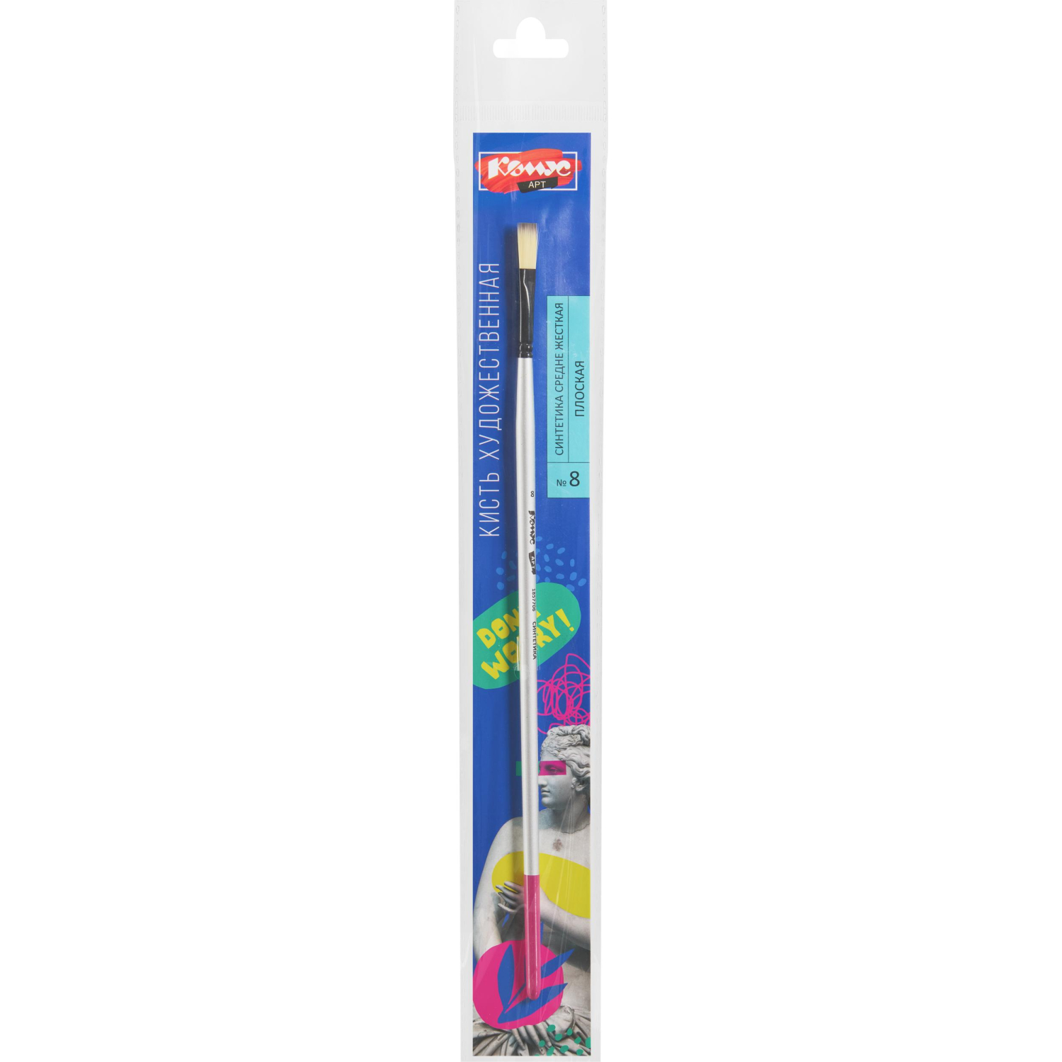 Кисть художественная Комус Арт синтетика средн.жест,плоск.,№8,длинная ручка