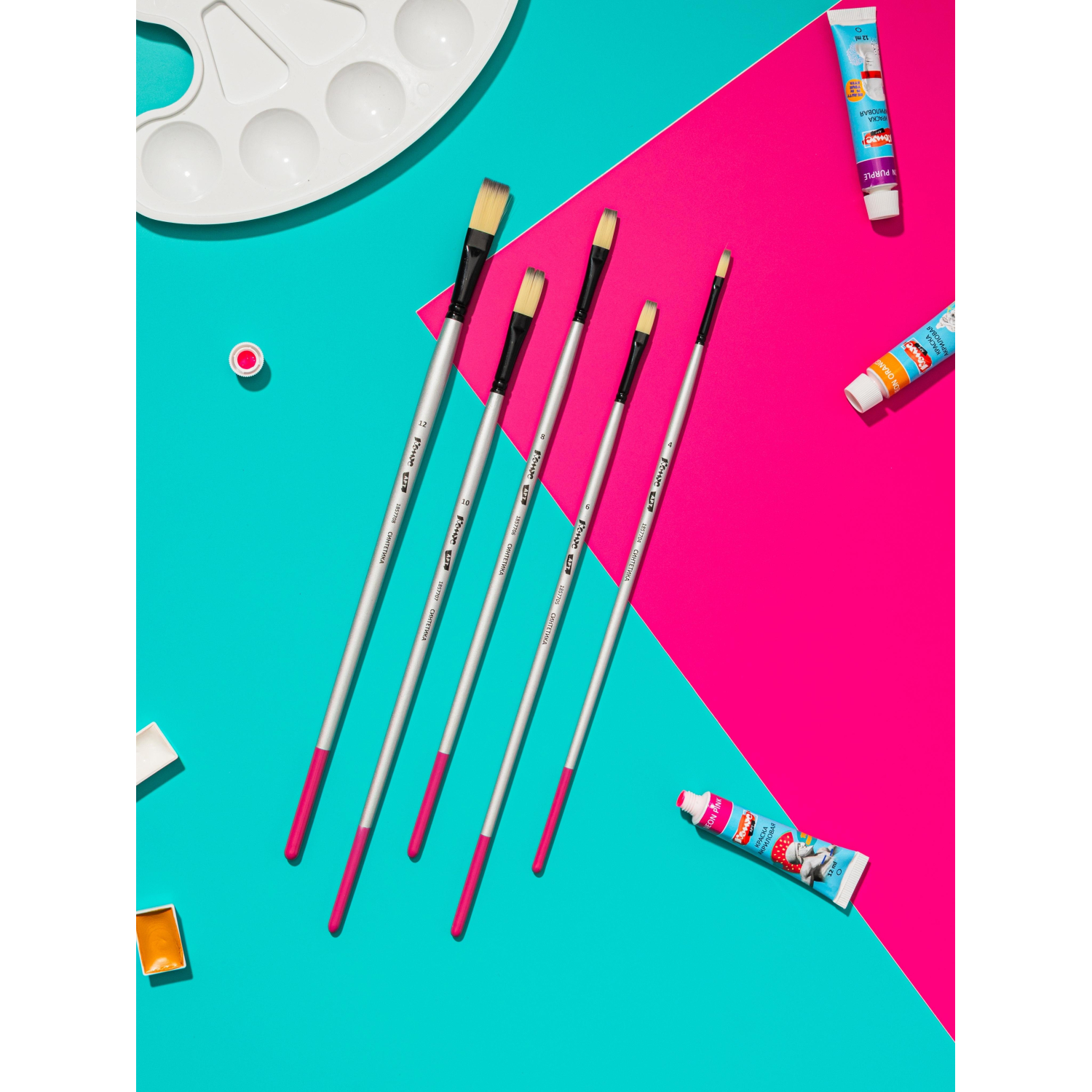 О товаре «Кисть художественная Комус Арт синтетика средн.жест,плоск.,№8,длинная ручка»