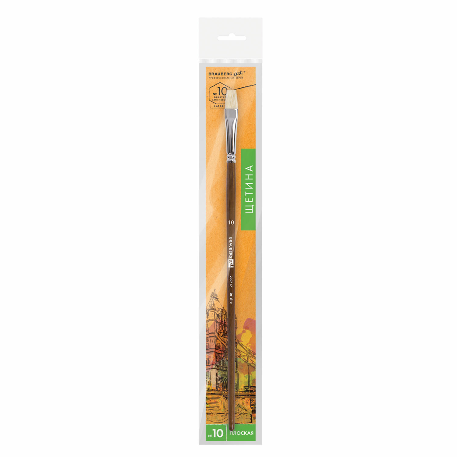 О товаре «Кисть художественная профессиональная BRAUBERG ART CLASSIC, щетина, плоская, № 10, длинная ручка, 200717»