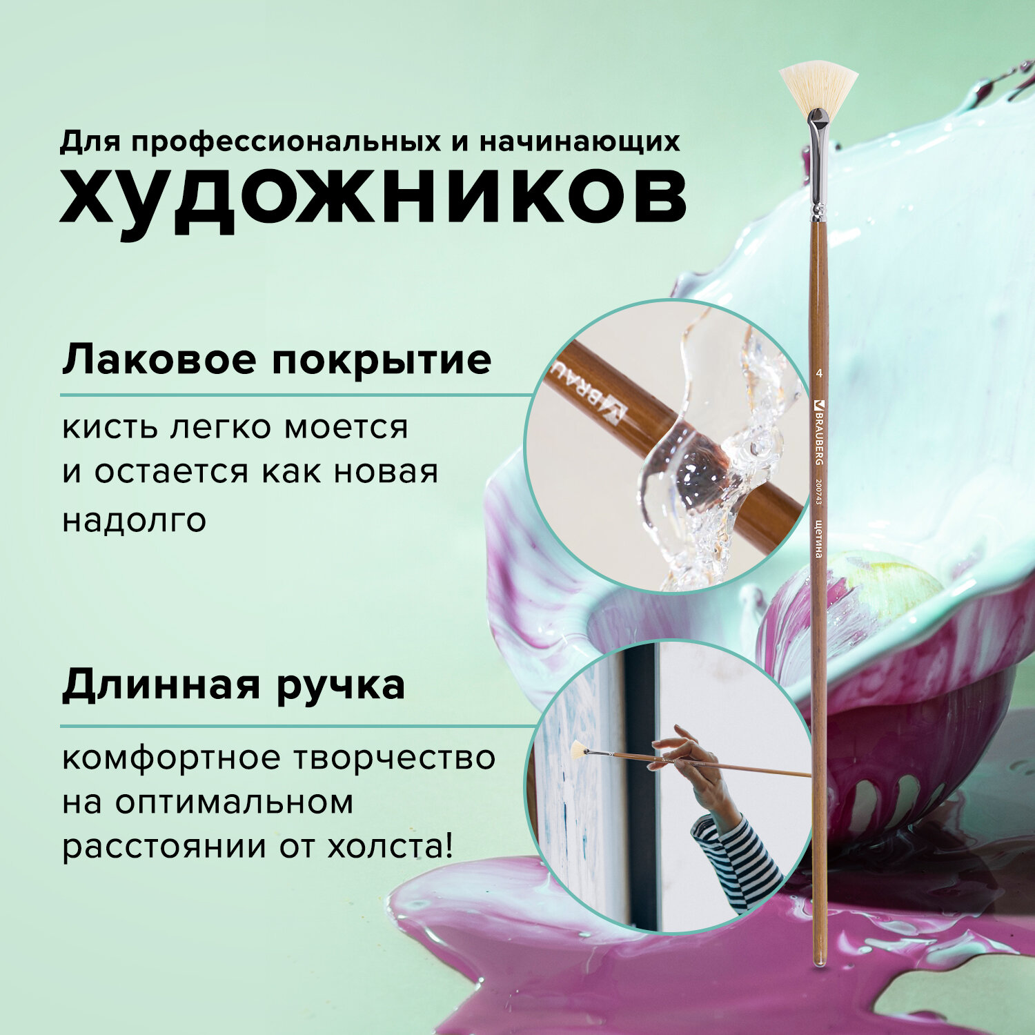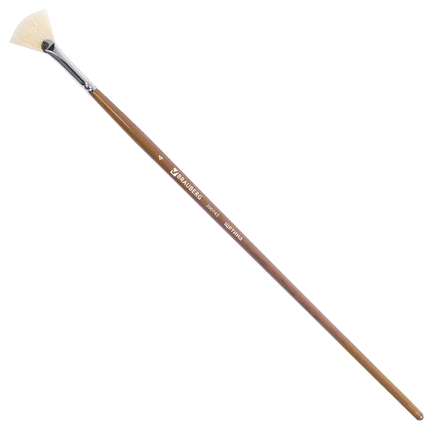 Кисть художественная профессиональная BRAUBERG ART CLASSIC, щетина, веерная, № 4, длинная ручка, 200743