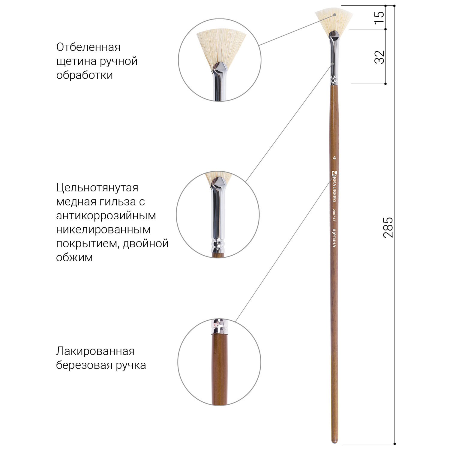 О товаре «Кисть художественная профессиональная BRAUBERG ART CLASSIC, щетина, веерная, № 4, длинная ручка, 200743»