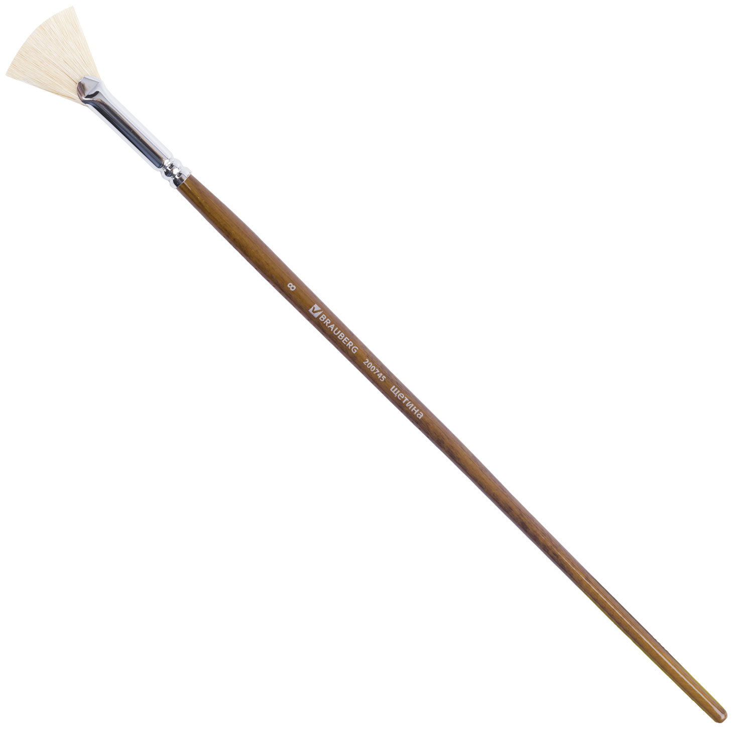 Кисть художественная профессиональная BRAUBERG ART CLASSIC, щетина, веерная, № 8, длинная ручка, 200745