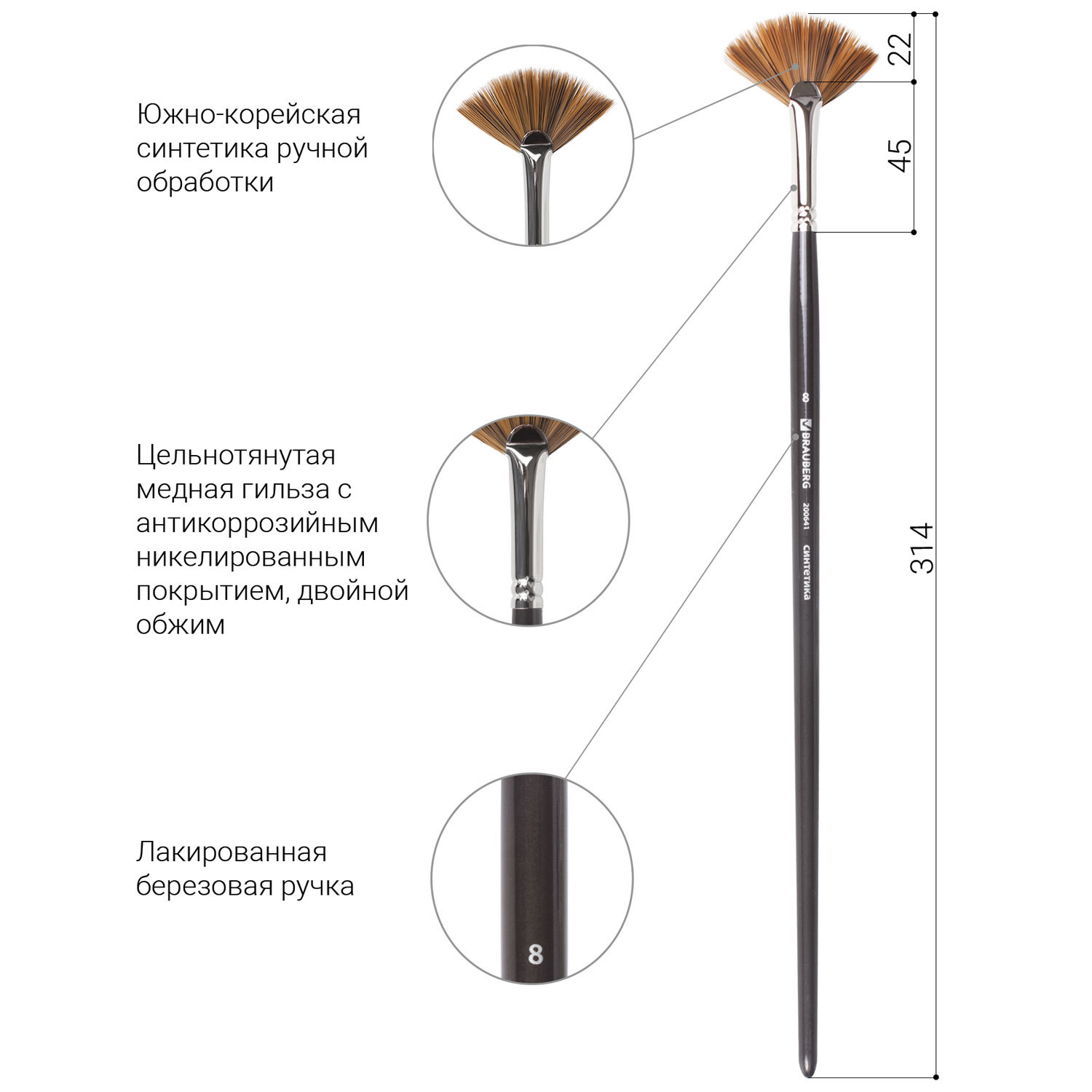 О товаре «Кисть художественная проф. BRAUBERG ART CLASSIC, синтетика мягкая, веерная, № 8, длинная ручка, 200641»