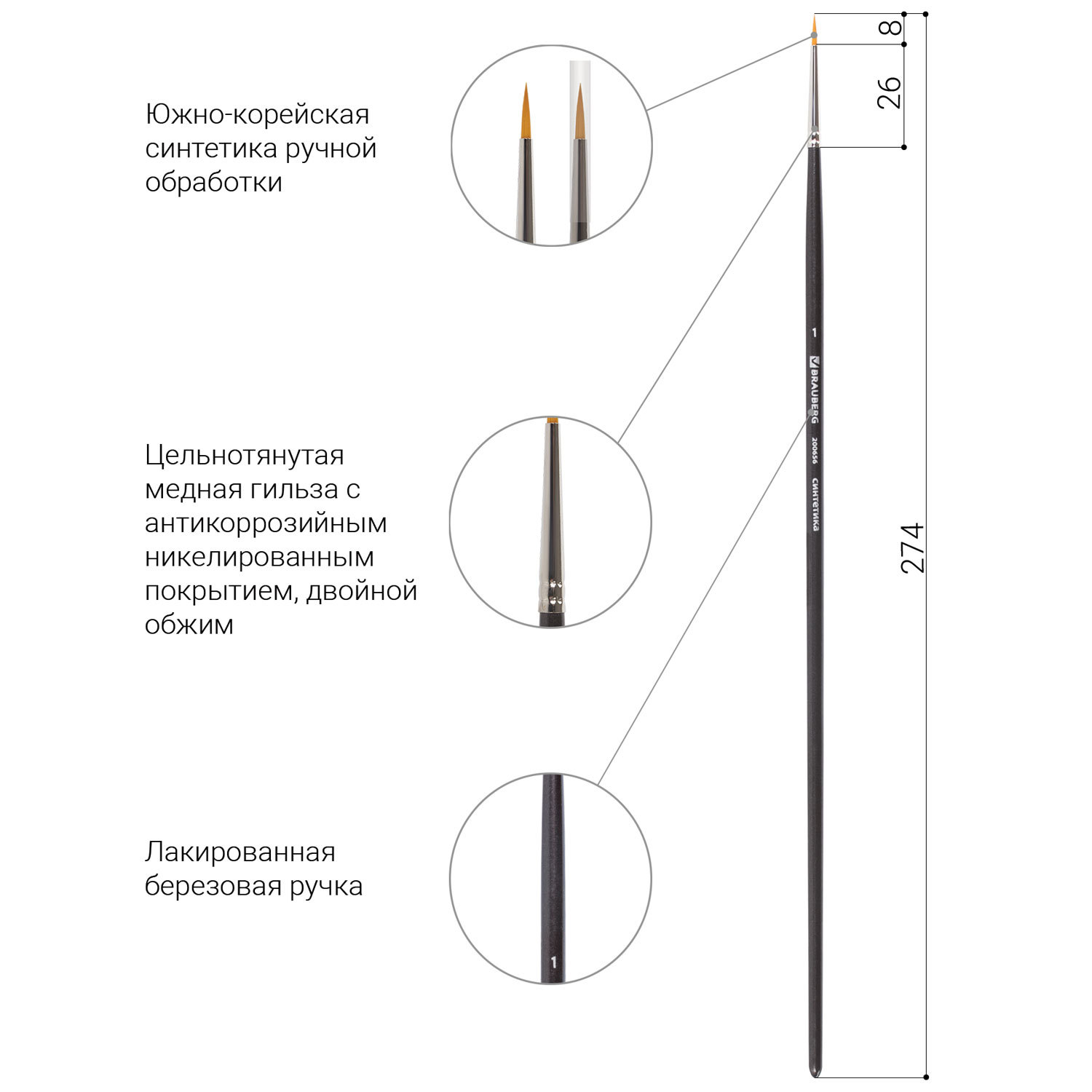 О товаре «Кисть художественная проф. BRAUBERG ART CLASSIC, синтетика жесткая, круглая, № 1, длинная ручка, 200656»