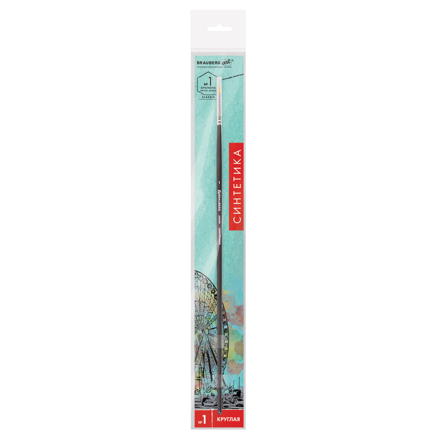 Кисть художественная проф. BRAUBERG ART CLASSIC, синтетика жесткая, круглая, № 1, длинная ручка, 200656