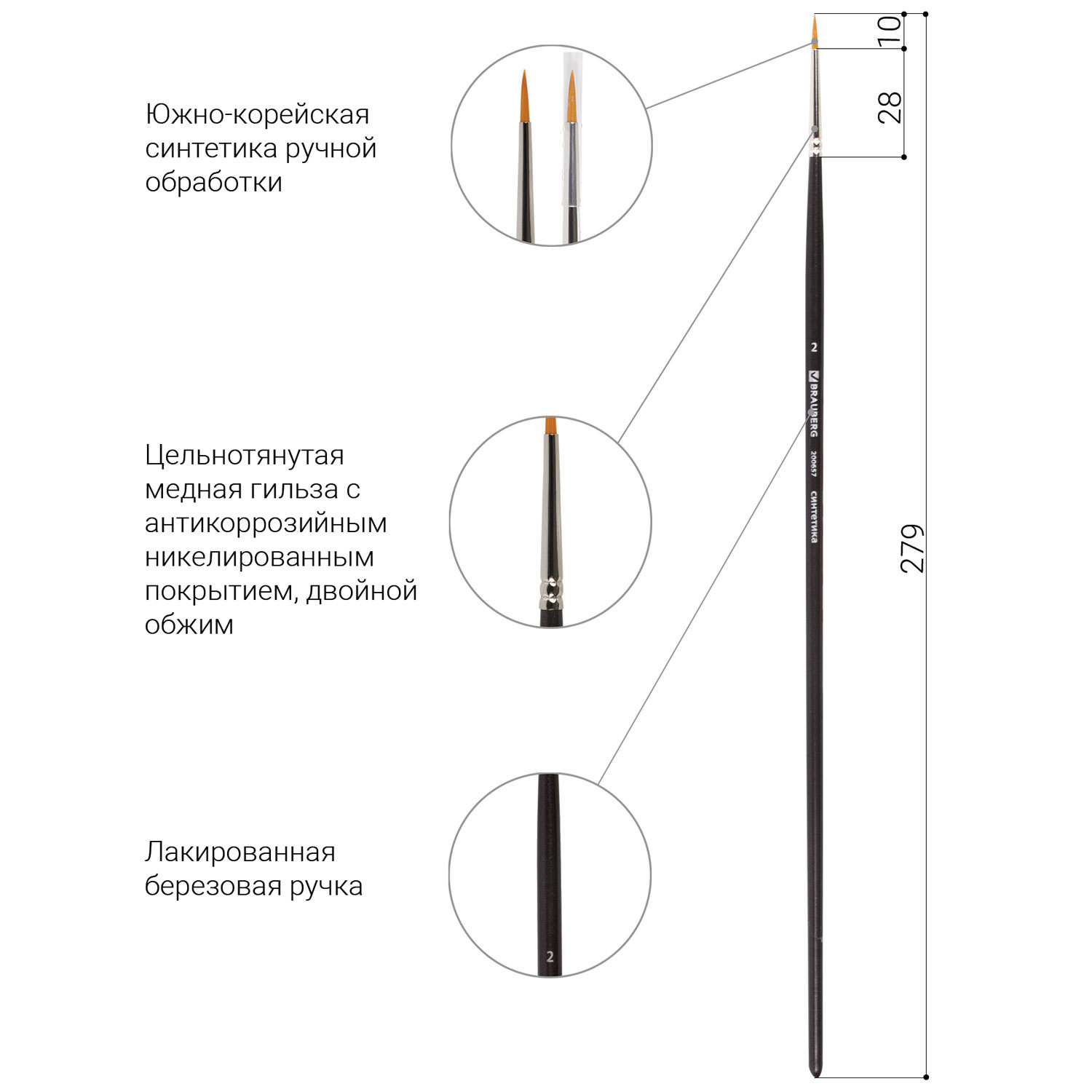 О товаре «Кисть художественная проф. BRAUBERG ART CLASSIC, синтетика жесткая, круглая, № 2, длинная ручка, 200657»