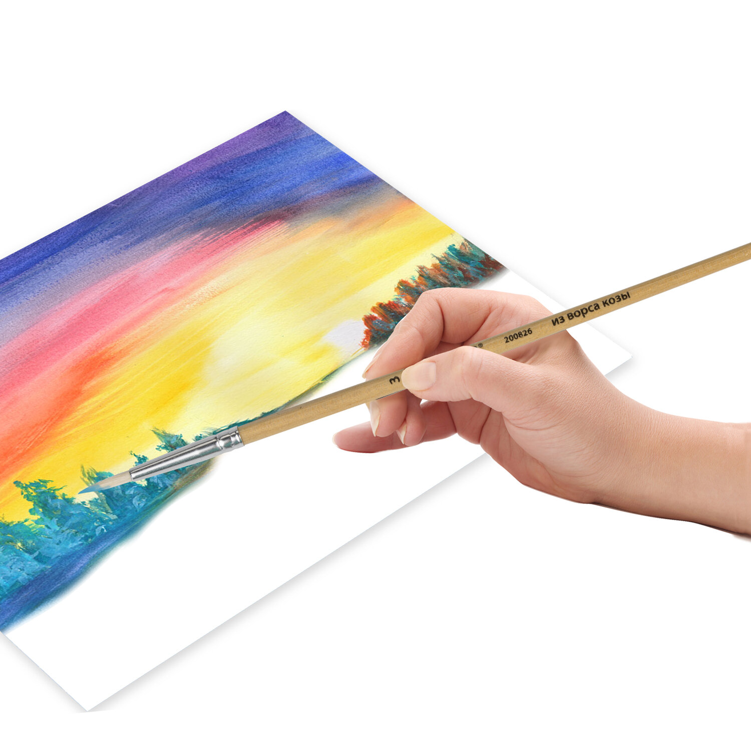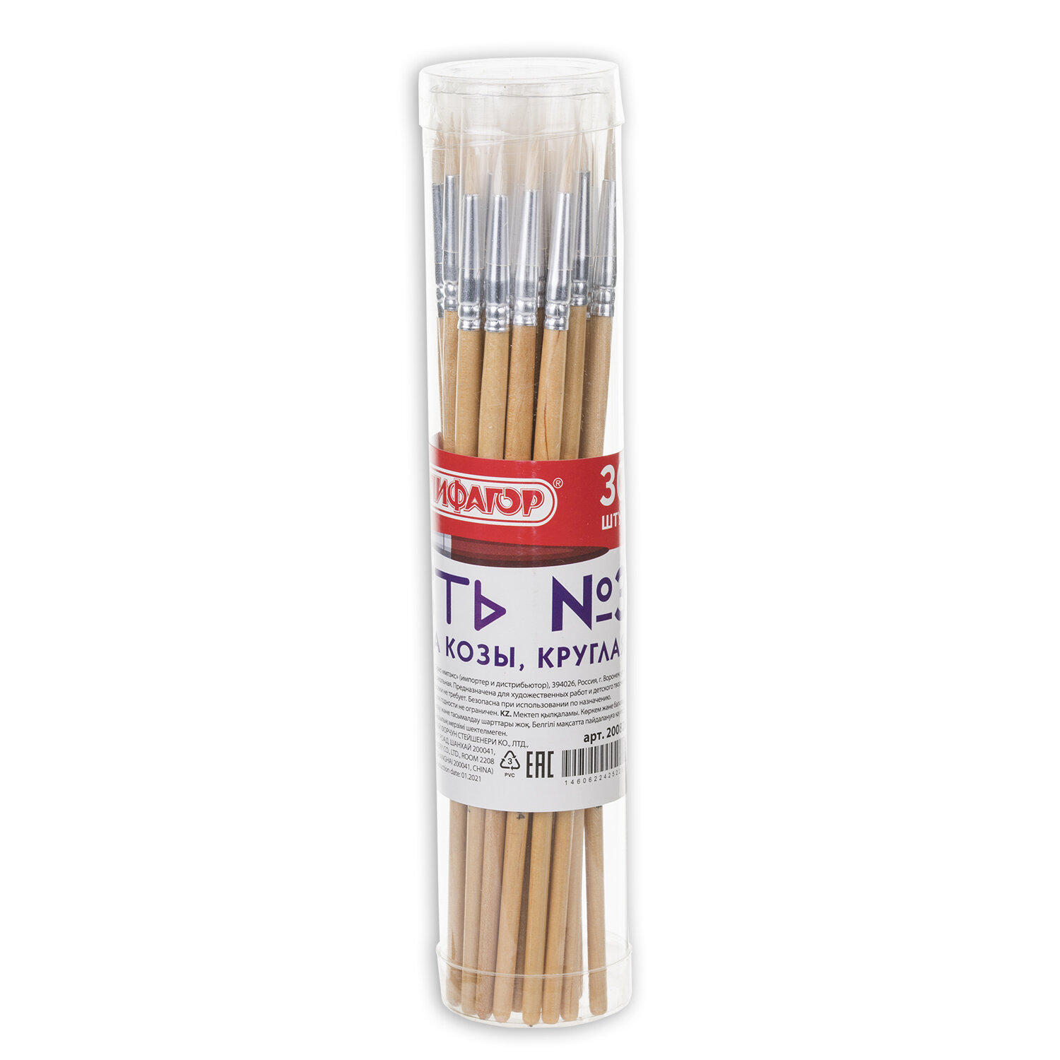 О товаре «Кисть ПИФАГОР, КОЗА, круглая, № 3, деревянная лакированная ручка, с колпачком, 200826»