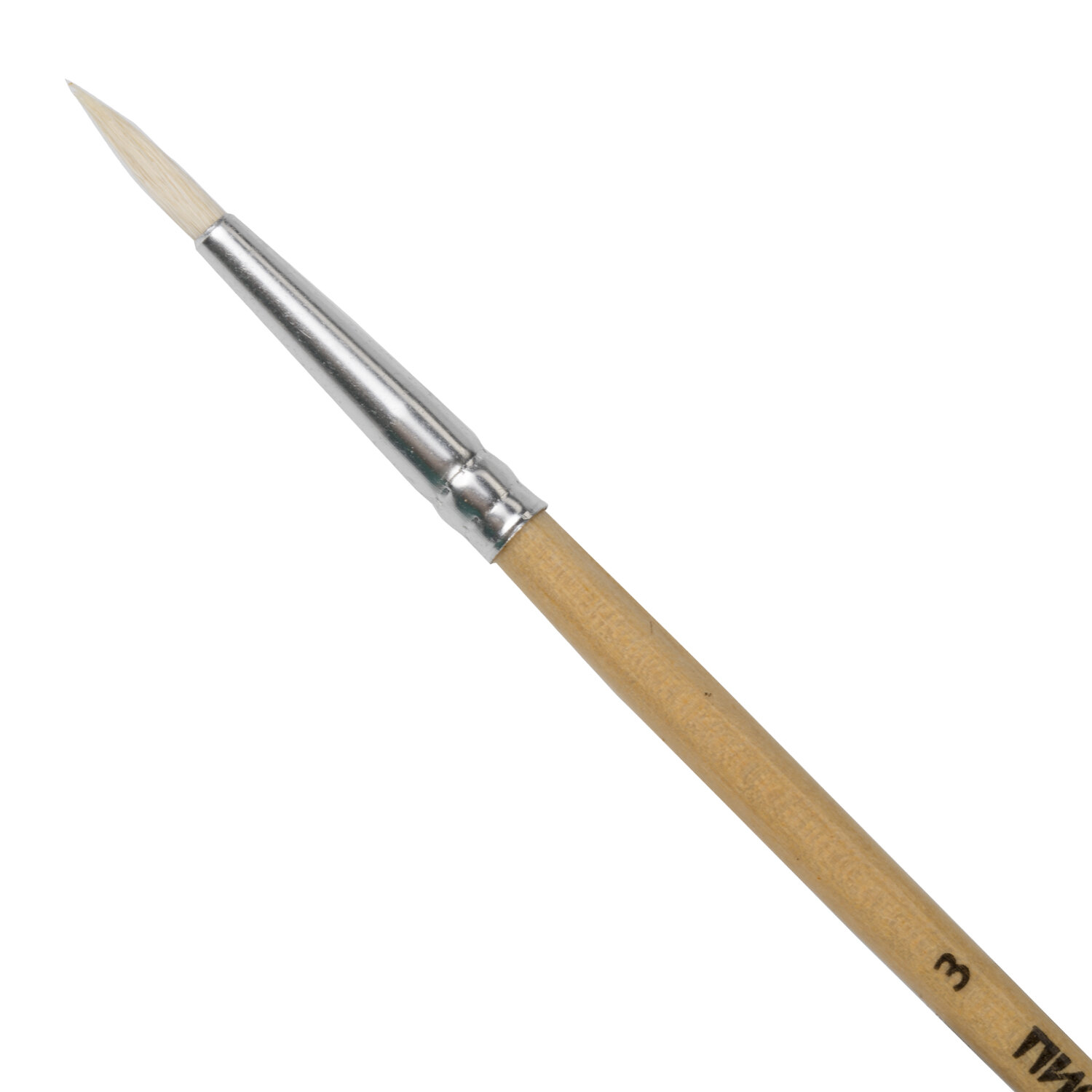 Кисть ПИФАГОР, КОЗА, круглая, № 3, деревянная лакированная ручка, с колпачком, 200826