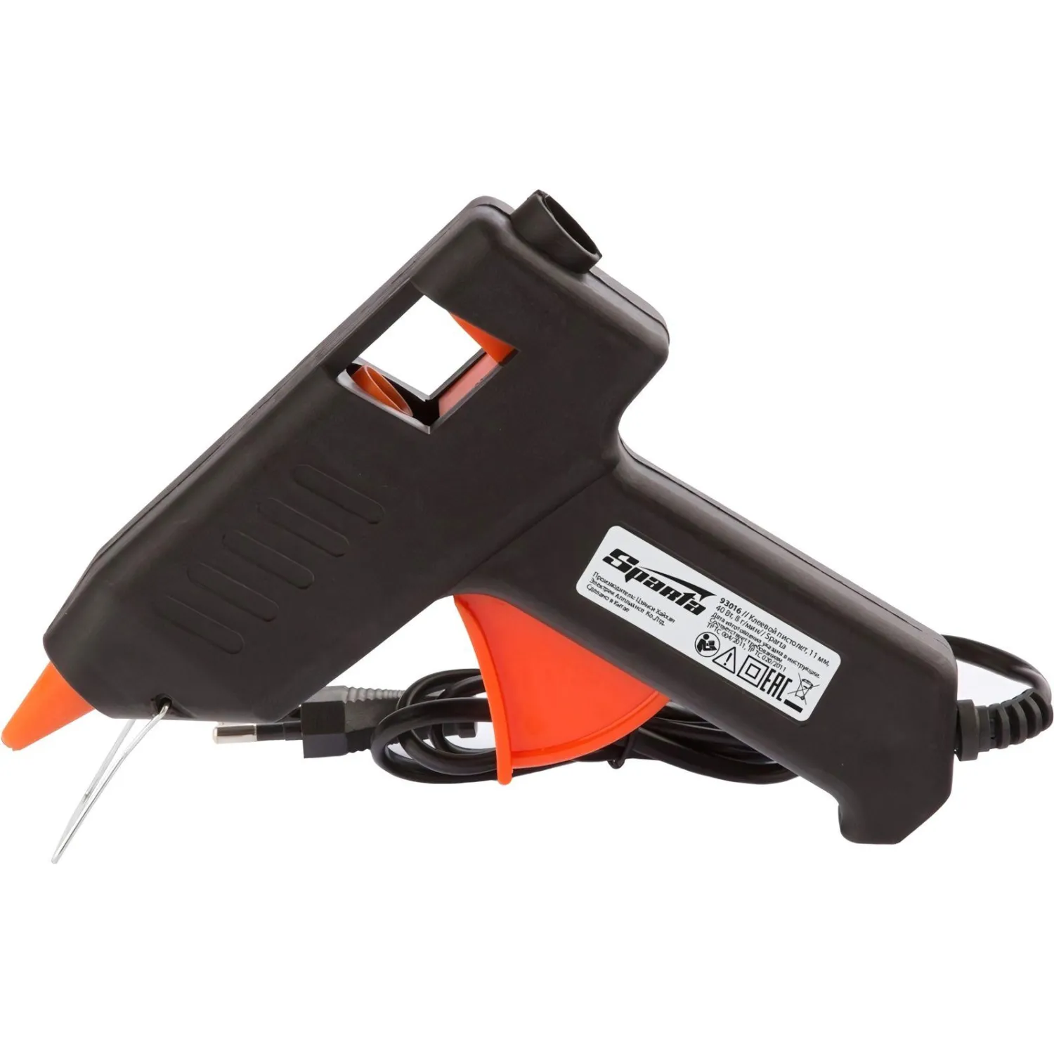 Клеевой пистолет сетевой Sparta (93016)Предназначен для прочной фиксации поверхностей с помощью расплавленной клеевой массы. Заправляется он специальным клеевым стержнем. С его помощью вы сможете склеить: дерево, пластик, резину, кожу, стекло, металлы (их лучше перед работой разогревать феном), ткань, пенопласт, керамику, картон, бумагу, цветы и т. д. Используется как в домашних условиях, так и на производстве: для монтажа электрических плат, декорирования, изготовления упаковочной и сувенирной продукции, при прокладке кабеля сетей фиксированной телефонной связи и сетей передачи данных, при производстве багетов и картинных рам. Прибор быстро разогревается, что благотворно влияет на проведения работ. Принцип работы: Клеевой стержень плавится в металлической камере с помощью нагревательного устройства и для точного дозирования при нажатии на курок подается из сопла на склеиваемую поверхность. Мощность потребления: 40 Вт. Индикатор состояния готовности: нетНаличие подставки: нетМаксимальная температура нагрева: 140 градусов. Длина клеевого стержня: до 30 см. Диаметр клеевого стержня: 11 мм. Длина сетевого кабеля: 1,08 м. Время нагрева до рабочей температуры: 5 мин