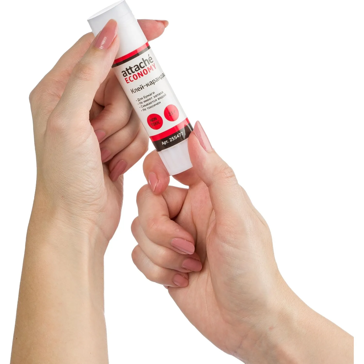 Клей-карандаш Выбор есть (Attache Economy) предназначен для склеивания бумаги, картона. Вес — 21 г. Круглая форма корпуса. Не содержит цветовых пигментов (бесцветный). Состав клея: ПВА. Моментально склеивает бумагу уже через 15 секунд, после нанесения клея. Легко очищается с одежды, рук, быстро высыхает. Клей морозостойкий. Выдерживает 1 цикл заморозки/разморозки при температуре до −18 С.