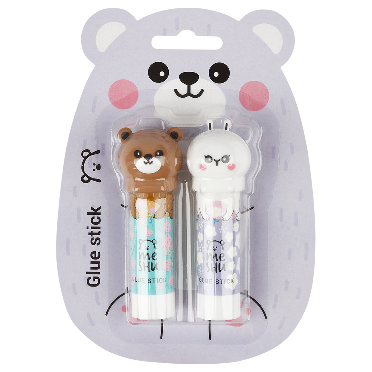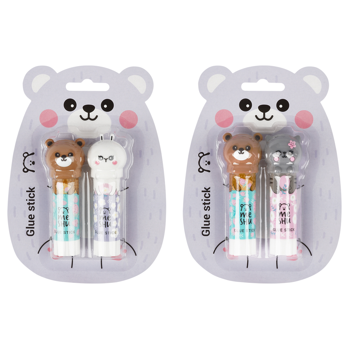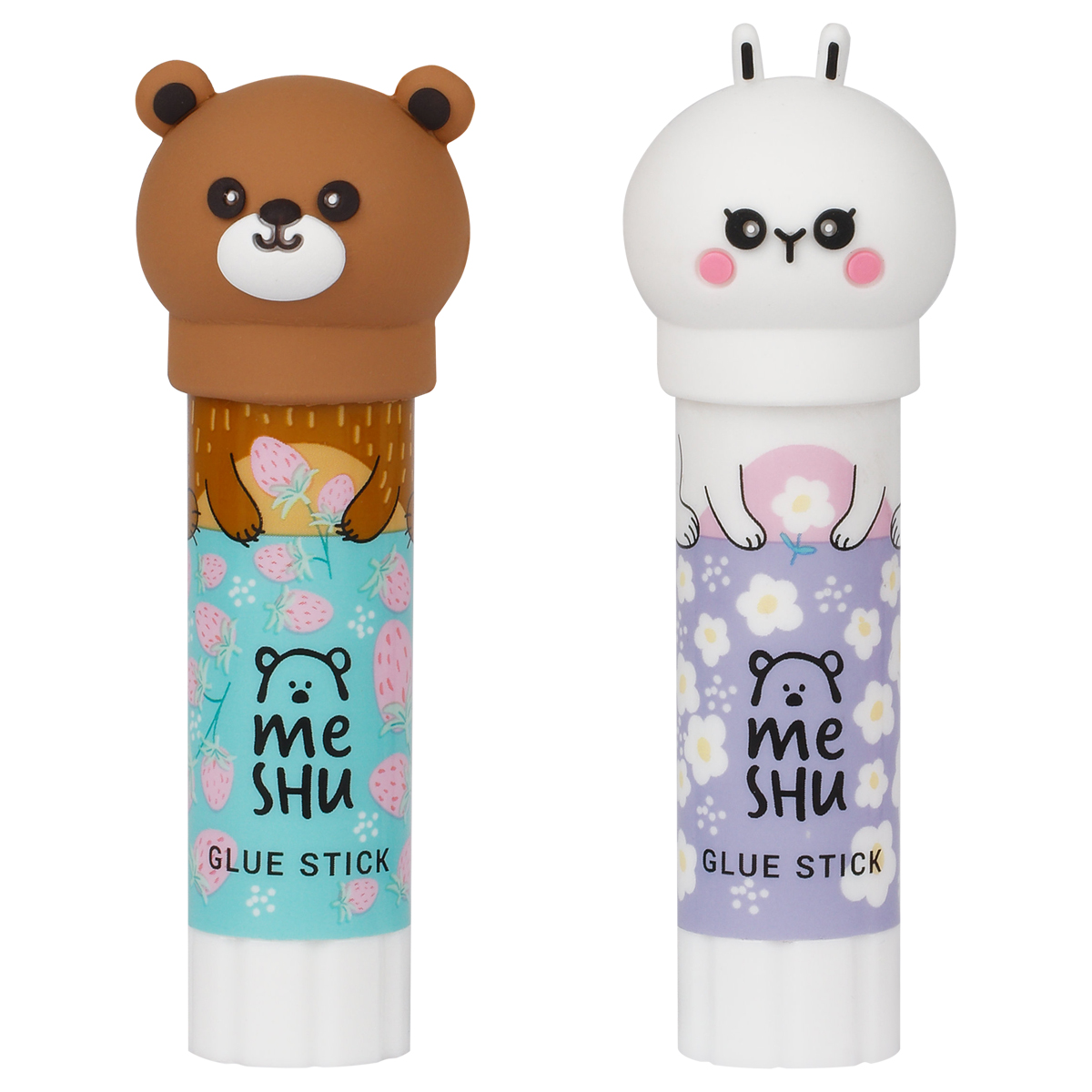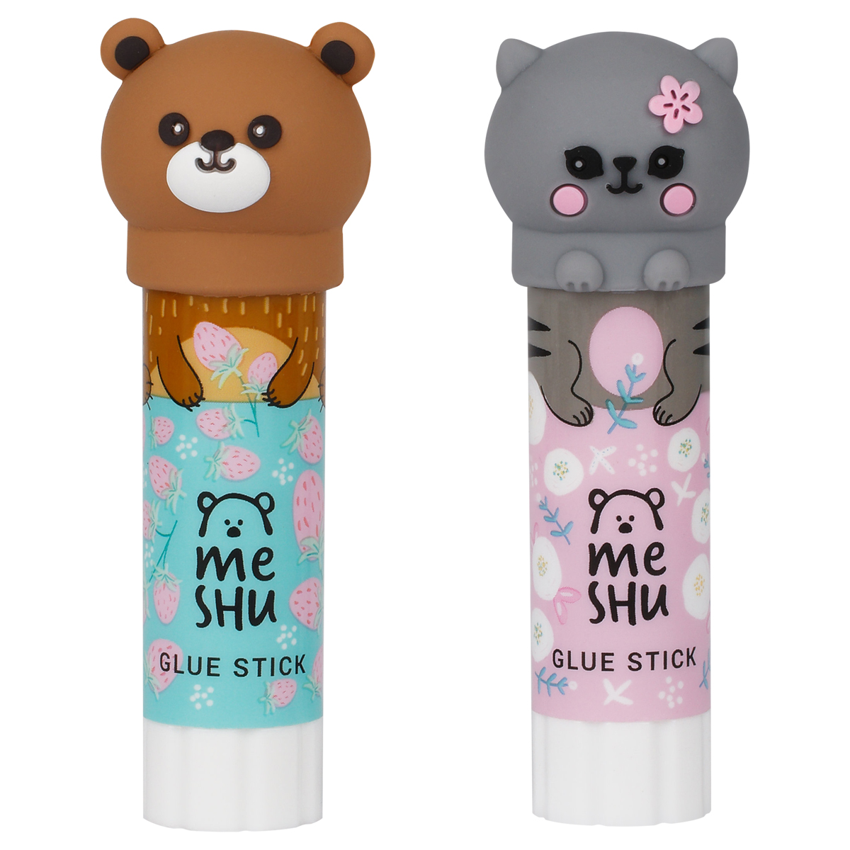 Клей-карандаш MESHU с топпером "Animals", 8г, 2шт в блистере, ПВП, ассорти