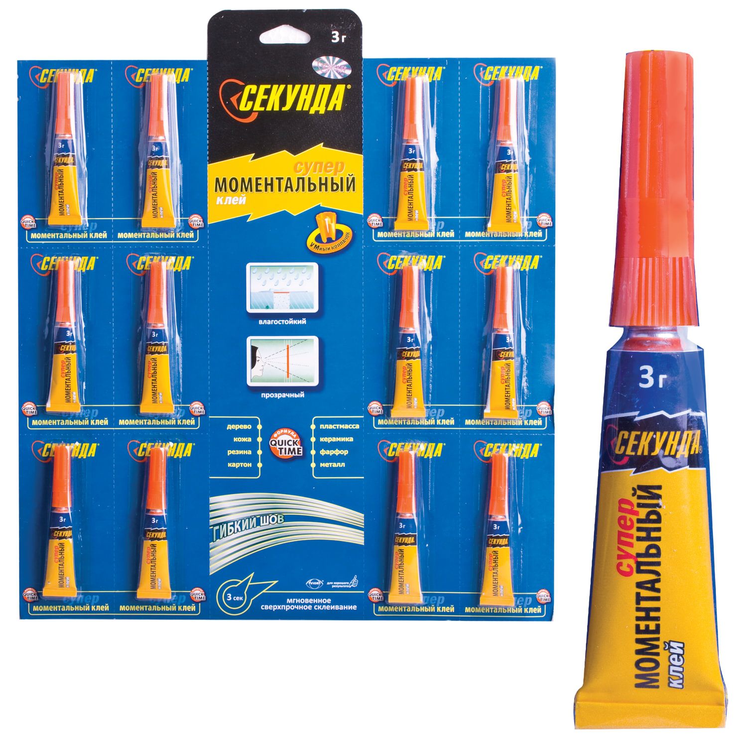 Клей универсальный "Секунда" Используется для соединения изделий и деталей, изготовленных из различных материалов: многослойные пластмассы, винил, резина, керамика, дерево, картон, кожа и кожзаменители, пробковое дерево и ДСП. Состав моментального клея позволяет быстро, в течение нескольких секунд, склеить необходимые детали, при этом качество соединения будет постоянным на долгое время. Формула клеевого состава QuickTime обеспечивает мгновенное соединение материалов; качество клеевого соединения не ухудшается и сохраняет свою прочность в течение длительного времени. Специальная конструкция насадки тюбика уменьшает риск попадания клея на руки или на одежду.
